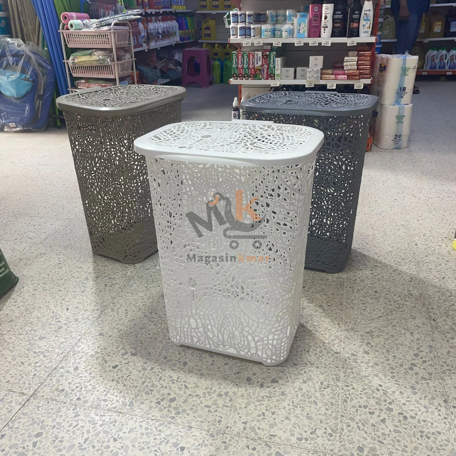 Panier à linge avec couvercle en plastique