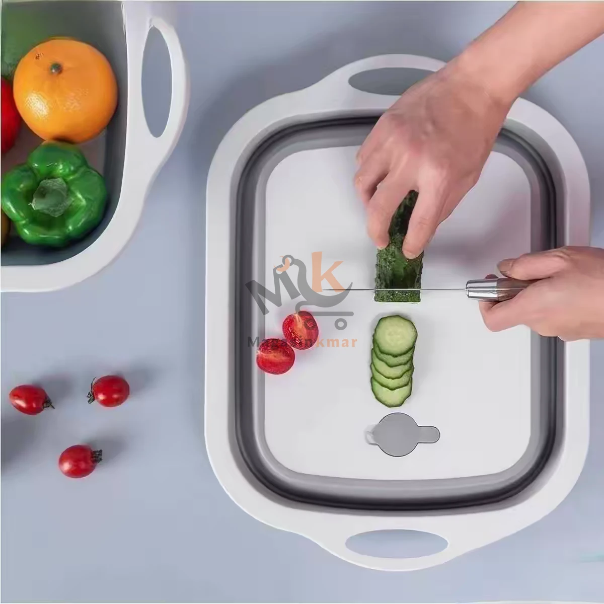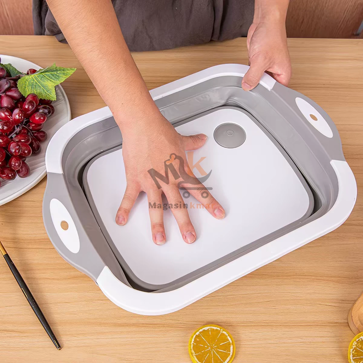 Idéale pour laver fruits et légumes puis découper facilement, tout en économisant de l’espace grâce à son design pliable.