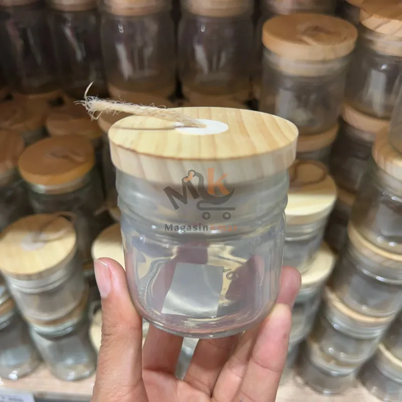 Mini bocal en verre avec couvercle en bois – Rangement élégant et naturel