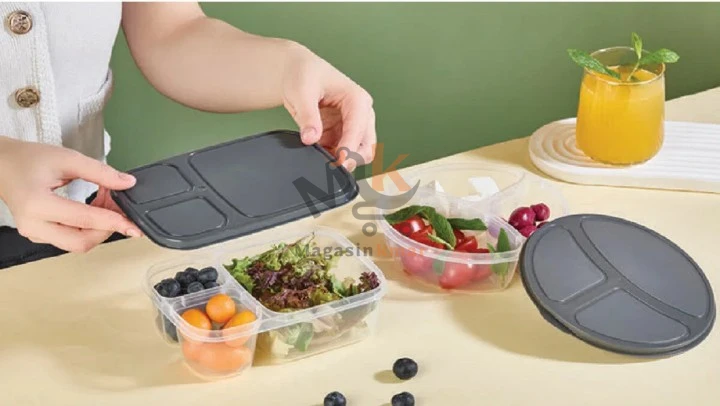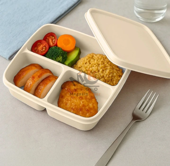 Boîte alimentaire 3 compartiments 800 ml – Lunch box pratique en plastique 19 × 13 cm