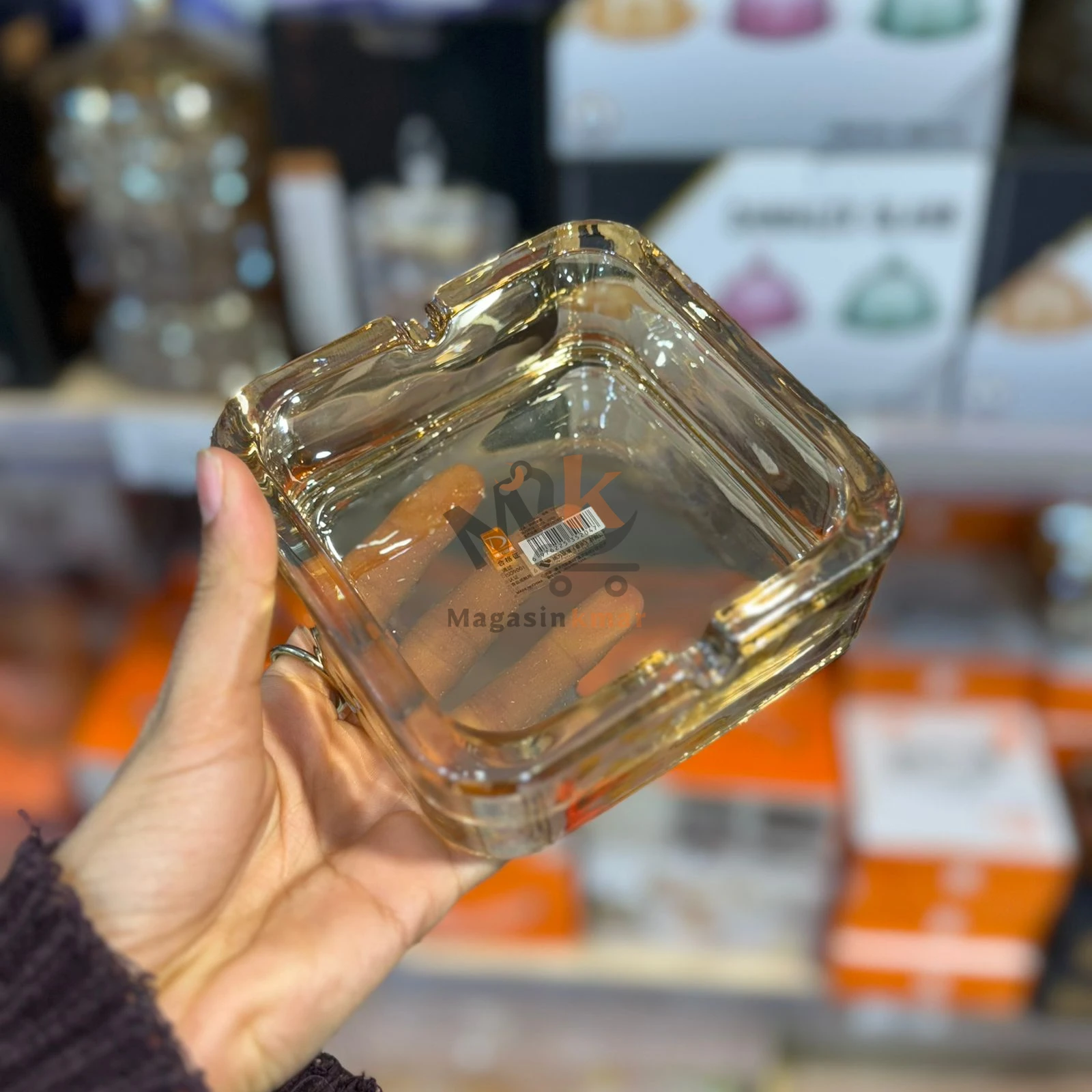 Cendrier carré en verre doré 11 cm – Design élégant pour table et salon