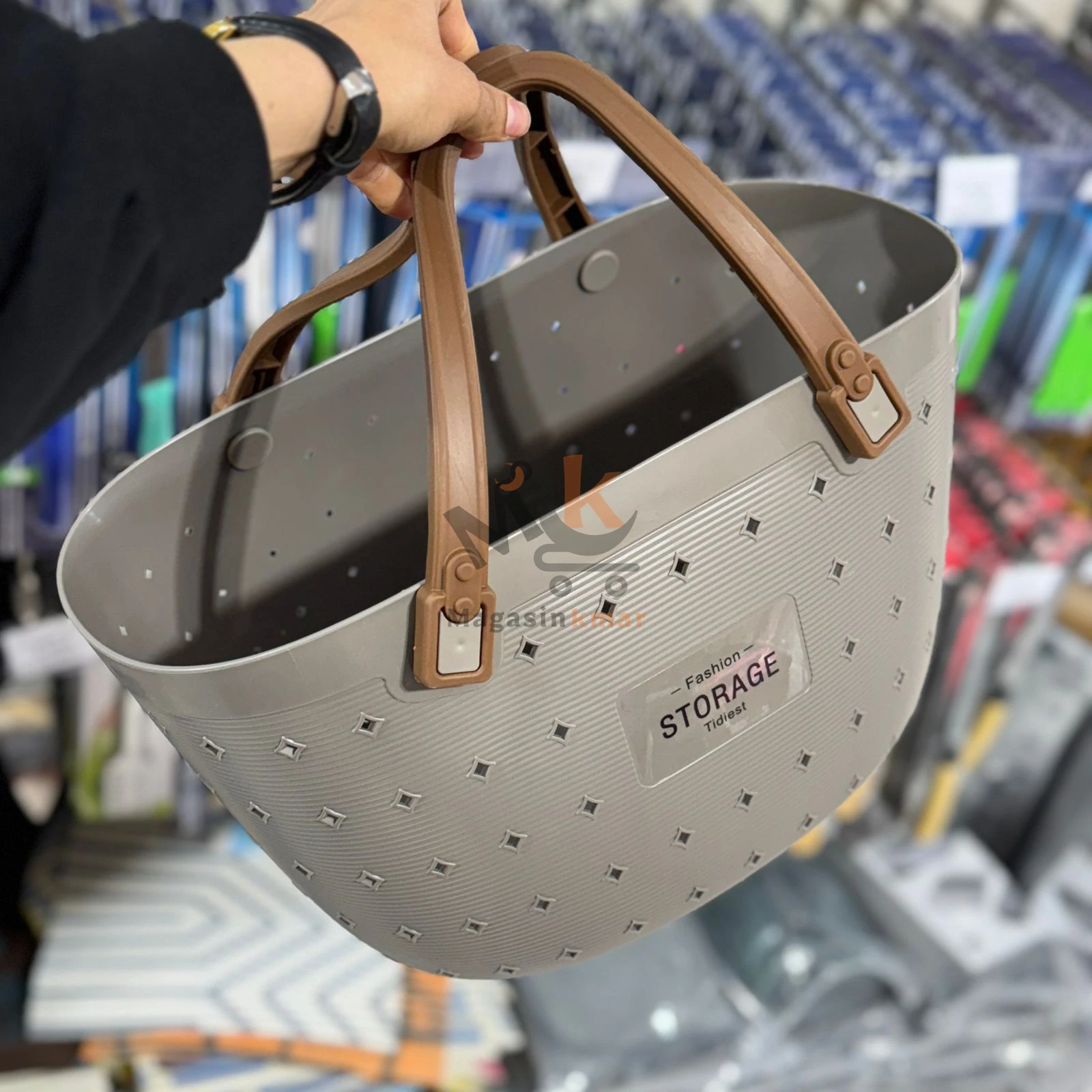 Couffin pratique en plastique avec manche, idéal pour transporter et ranger divers objets à la maison.