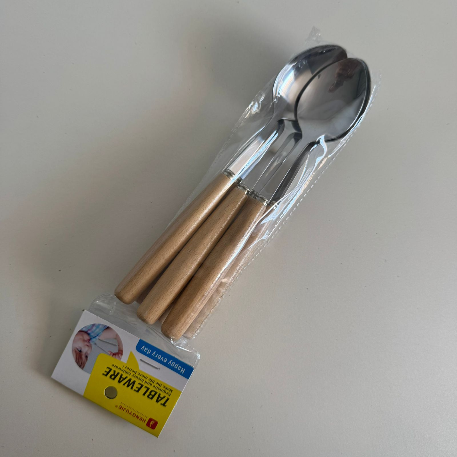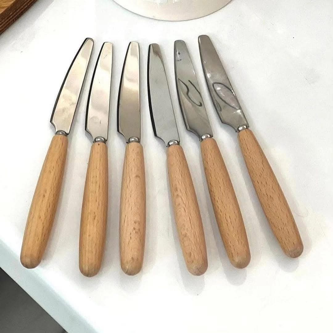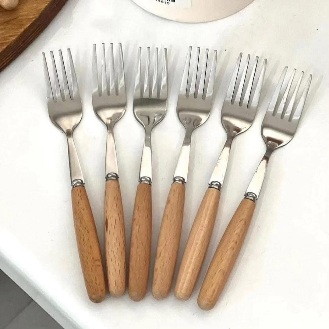 Lot de 6 couverts avec manche en bois – Cuillères, fourchettes et couteaux