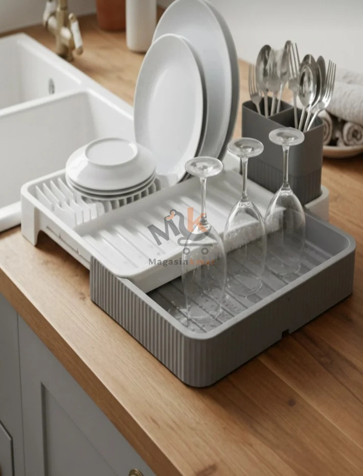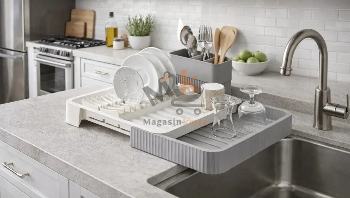 Idéal pour sécher assiettes, verres et couverts tout en s’adaptant à votre évier .