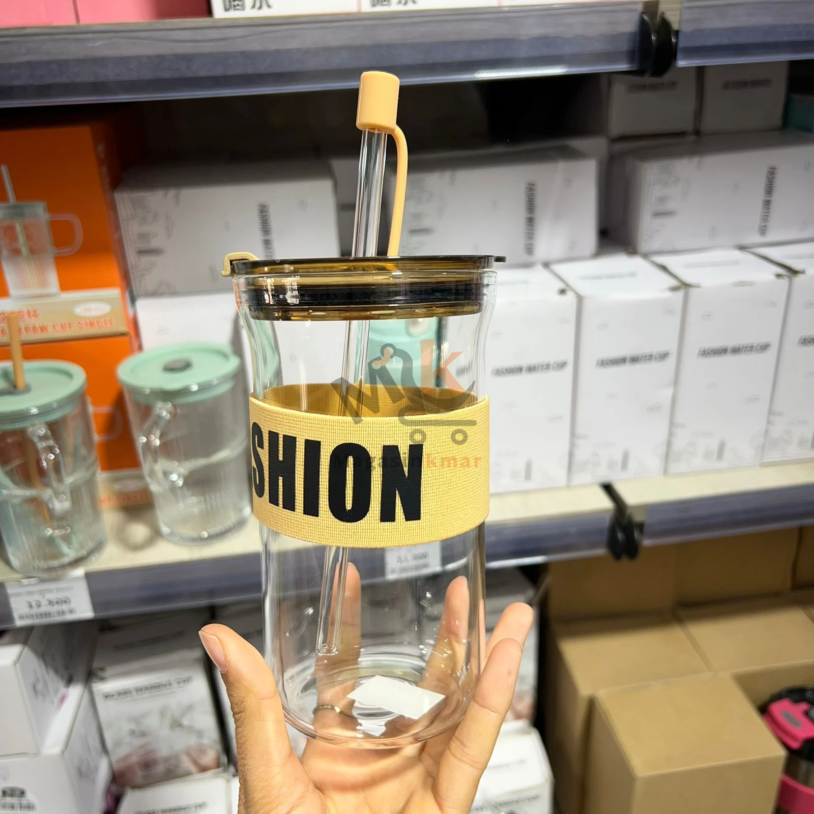 Glass en Verre avec Paille– Verre Élégant pour Boissons Fraîches et Usage Quotidien