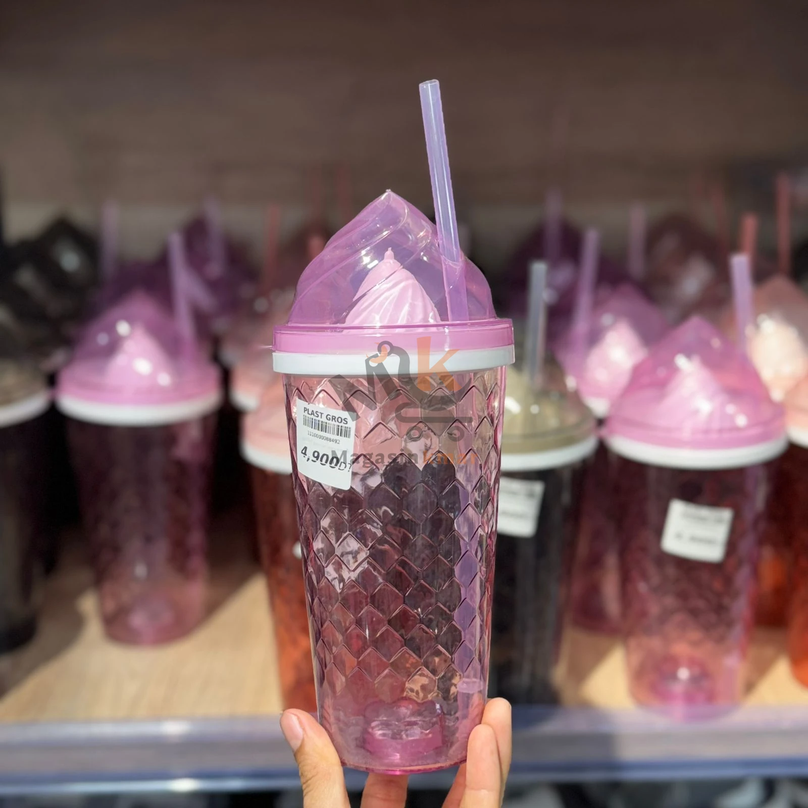 Gobelet presse-agrumes 2 en 1 en plexi 620 ml avec paille – Pratique pour jus frais