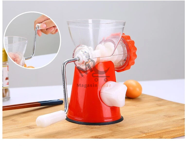Idéal pour hacher rapidement vos légumes et herbes, ce mini hachoir en plastique de 18 cm est un indispensable pratique pour la cuisine tunisienne.