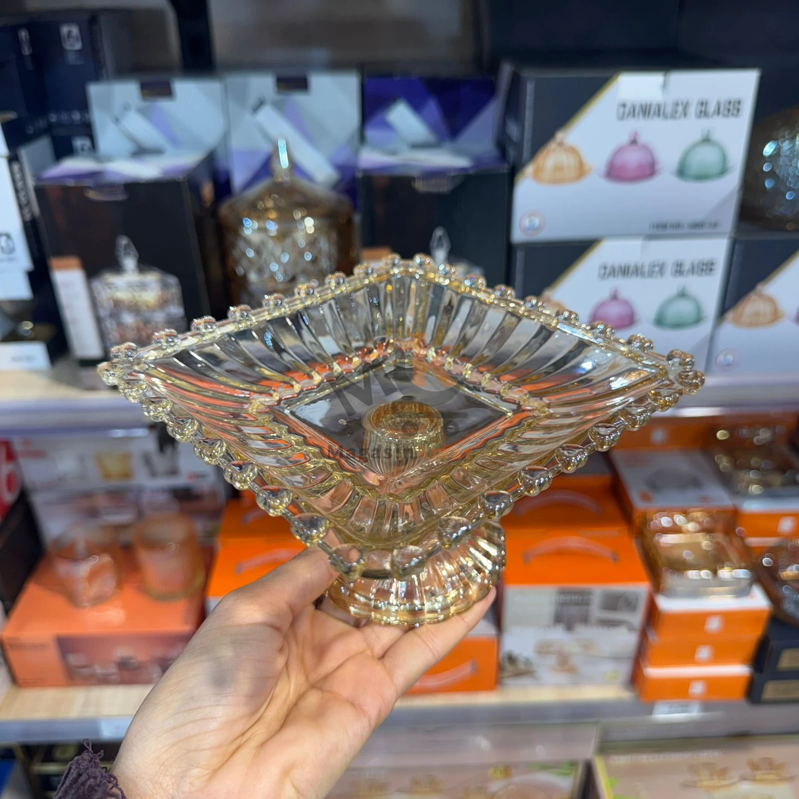 Mini présentoir carré en verre doré 15 cm – Support élégant pour desserts et décoration
