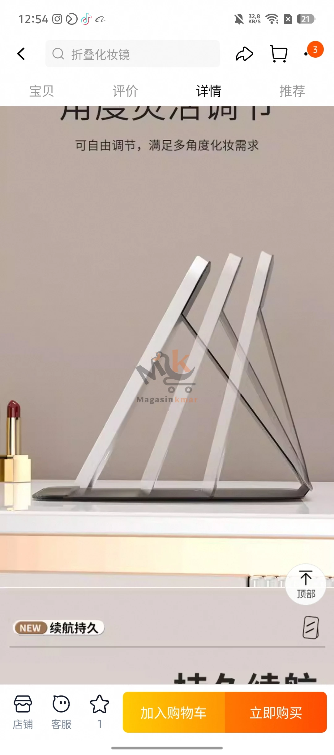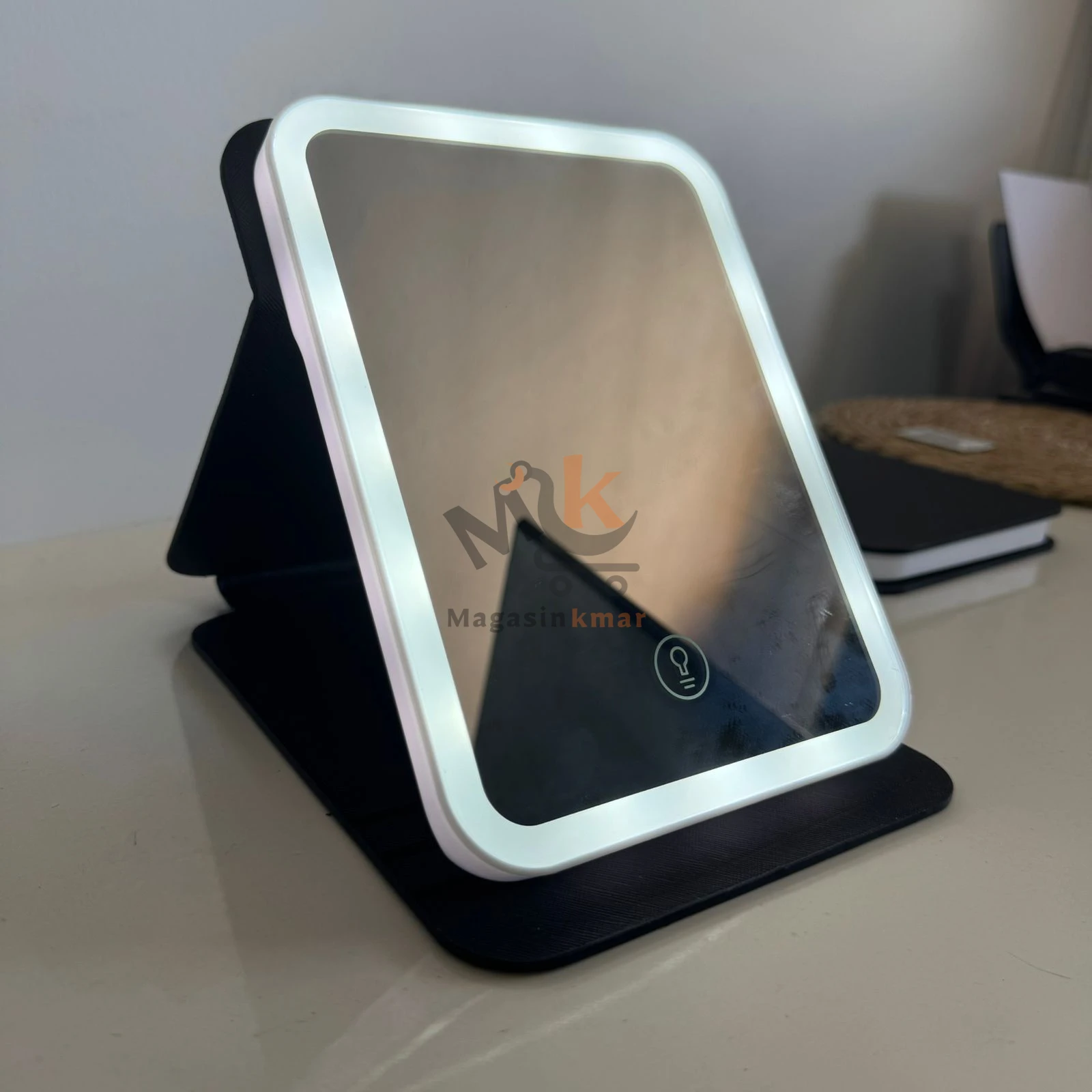 Miroir de maquillage LED de bureau 20x15 cm, en plastique, avec éclairage intégré pour un maquillage précis et lumineux.