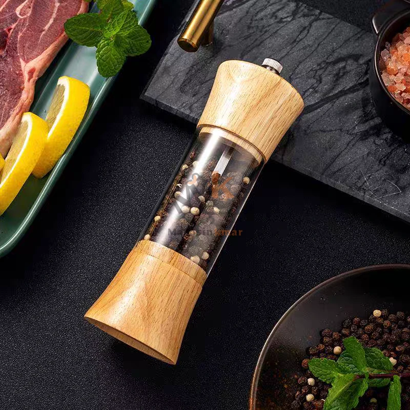 Moulin sel et poivre en plexi et bois 15 cm – Broyeur élégant pour cuisine