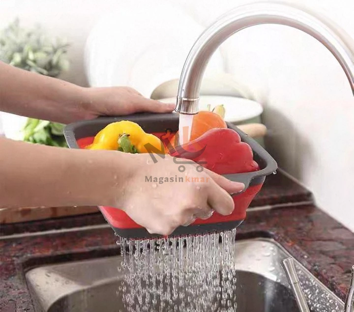 Passoire carrée pliable en silicone PP5 2 L – Égouttoir pratique gain de place