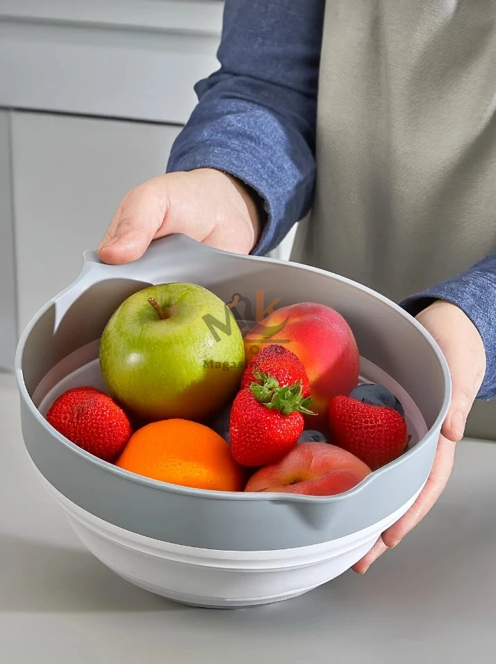 Passoire bol pliable 2 en 1 en silicone PP5 3.25 L – passoire pratique et gain de place