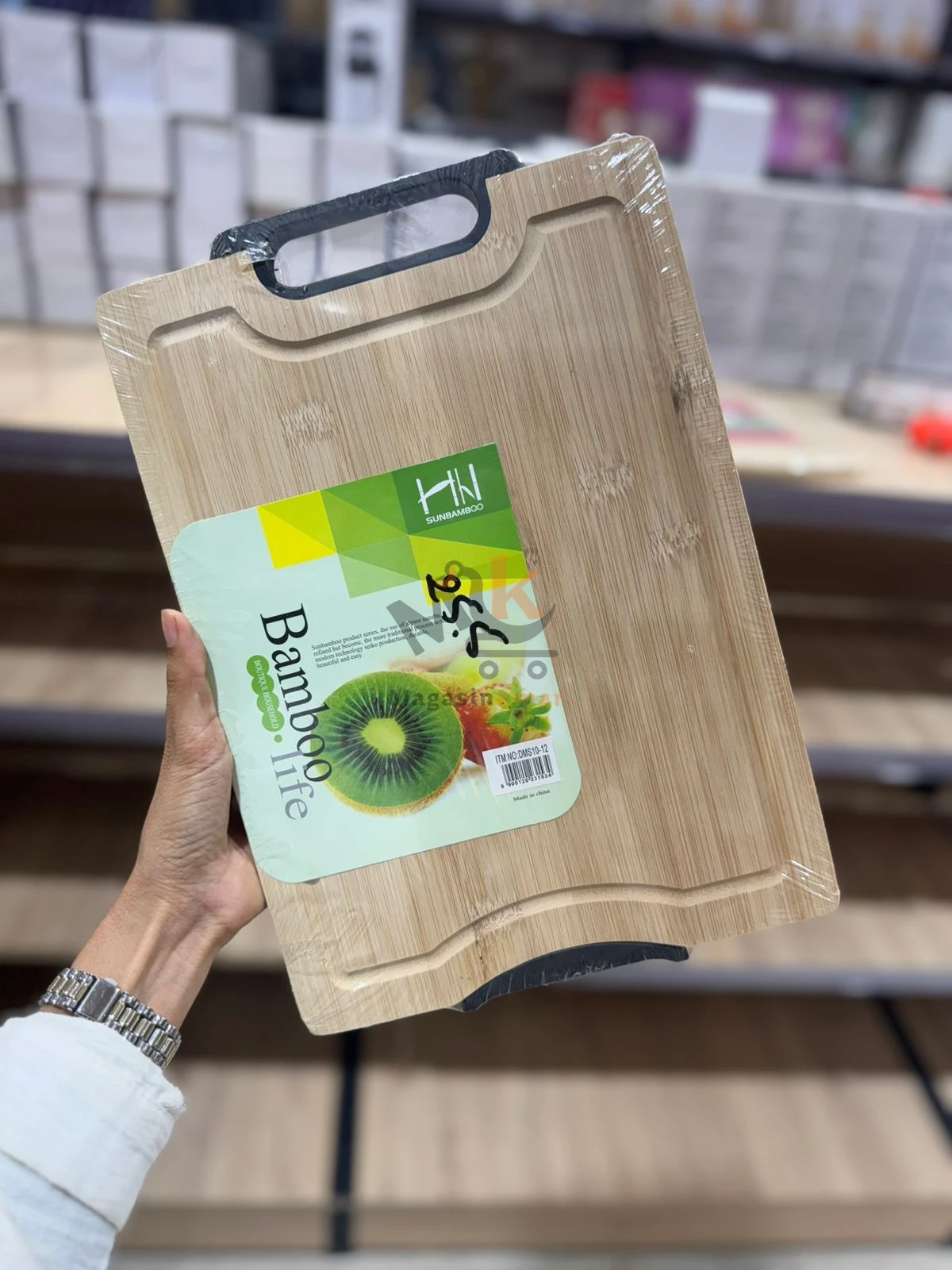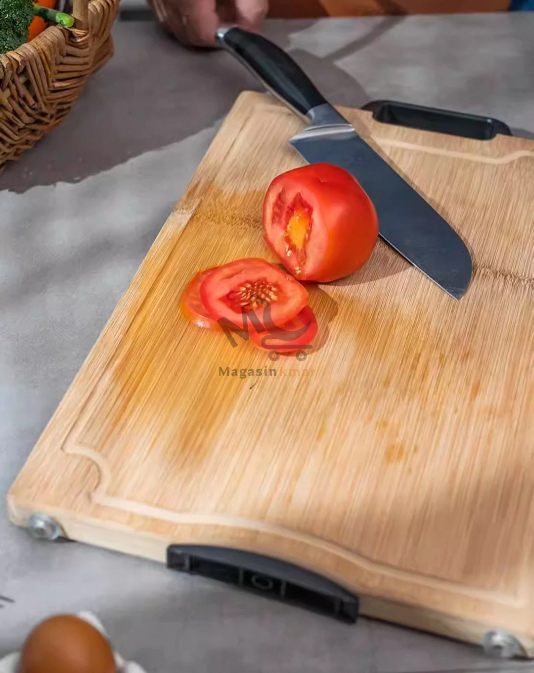 Planche à découper en bambou de 35 x 24 cm, robuste et hygiénique, idéale pour préparer viandes, légumes et fruits au quotidien.