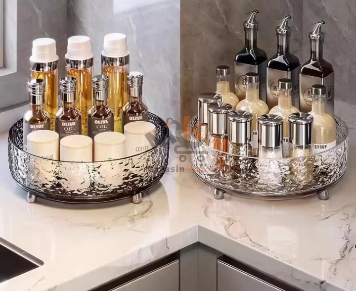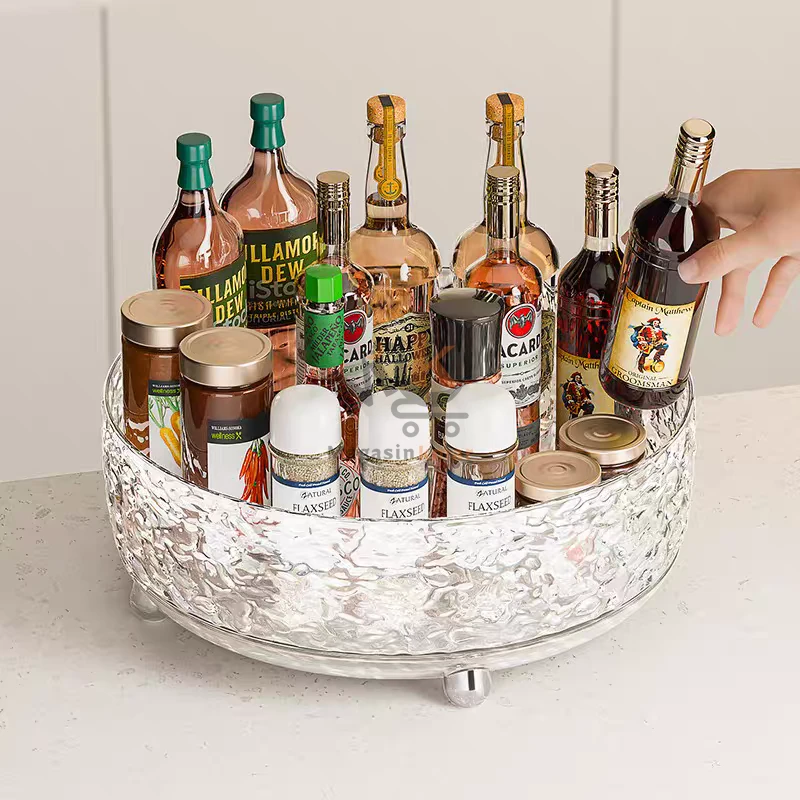 Rangement maquillage rotatif en plexi 23 cm – Organisateur cosmétique pratique et moderne