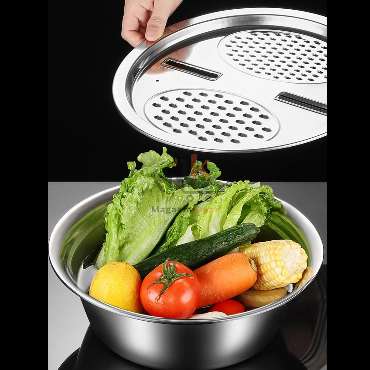 Râpe à salade avec bol en métal 25 cm – Préparation facile et efficace