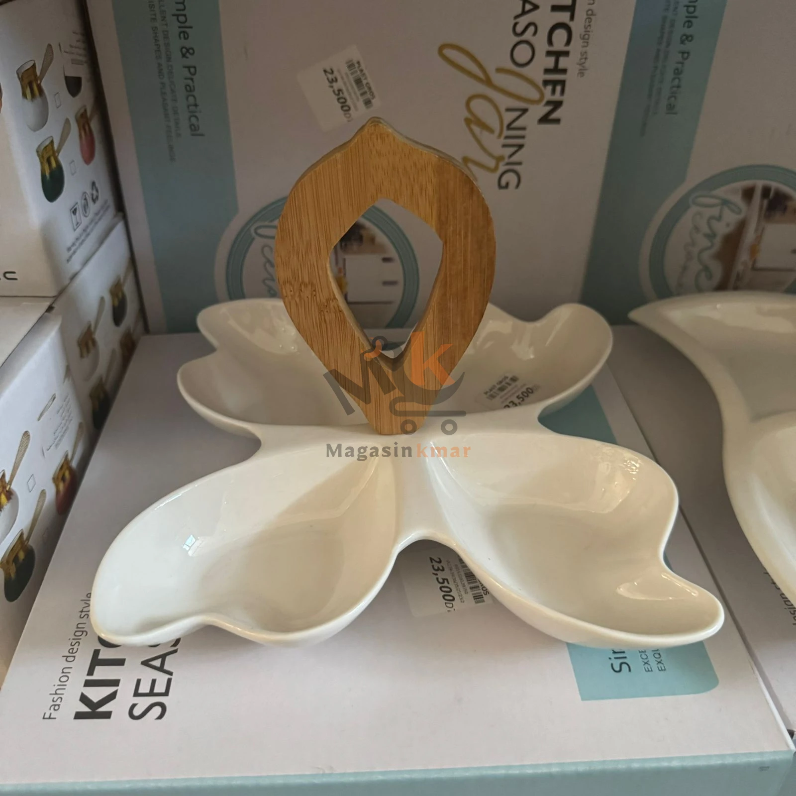 Présentoir en céramique avec poignée en bois – Plateau élégant 30 cm