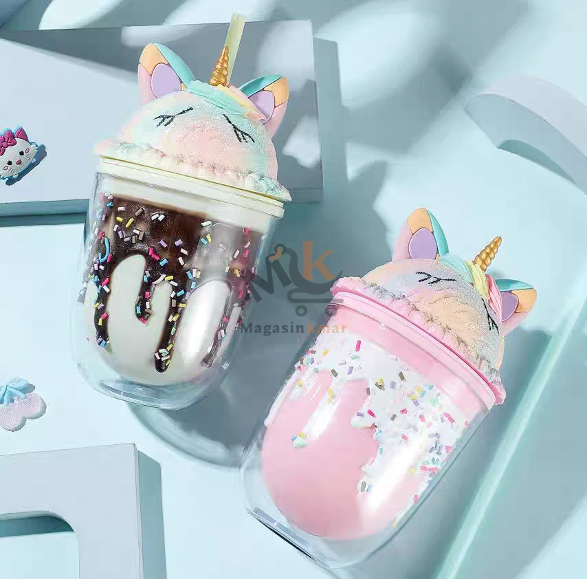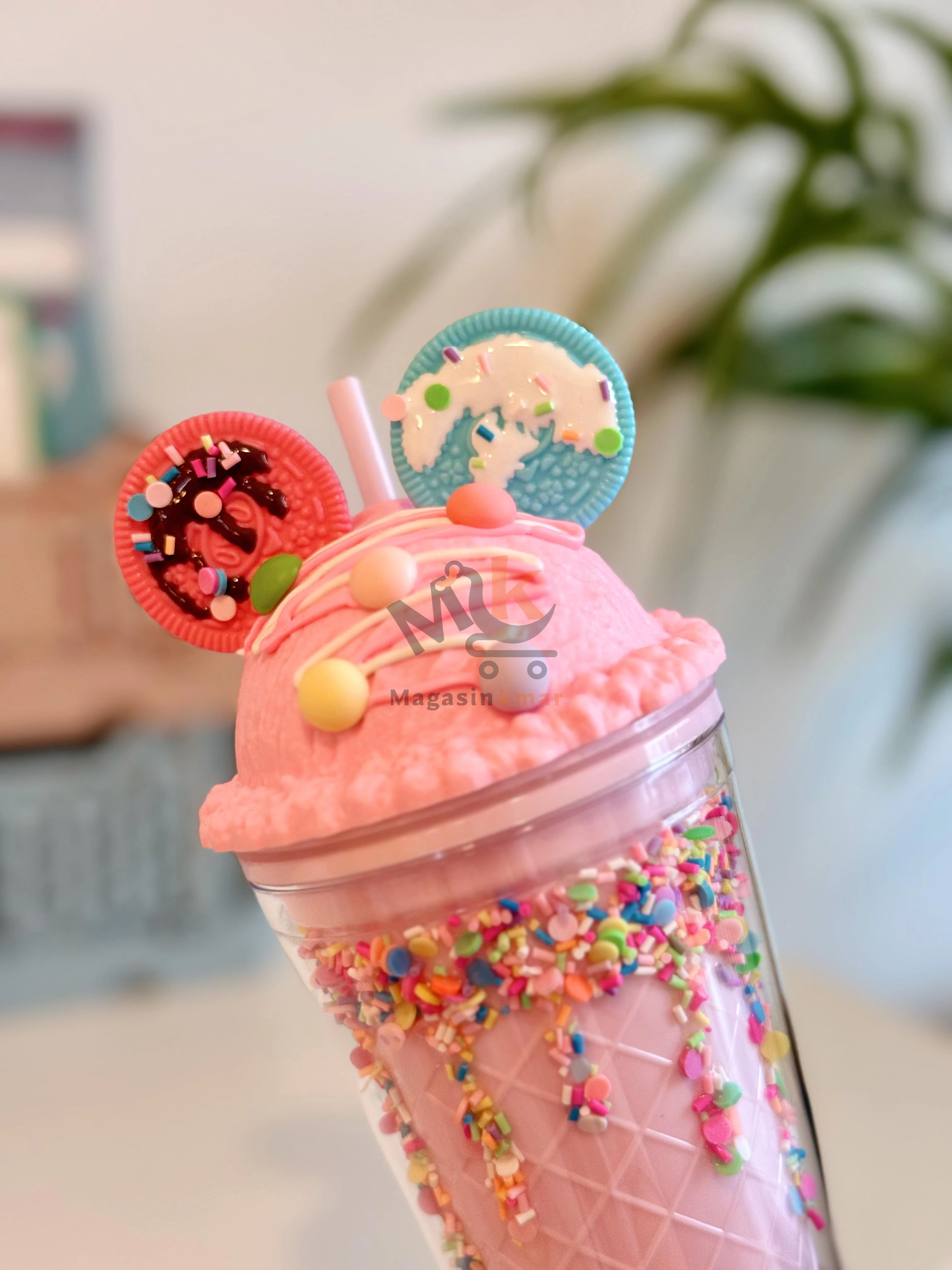 Gobelet en plastique avec couvercle et paille –forme biscuits et glace