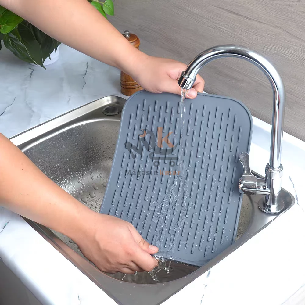 Tapis égouttoir vaisselle en silicone 34 × 25 cm – Antidérapant et pratique