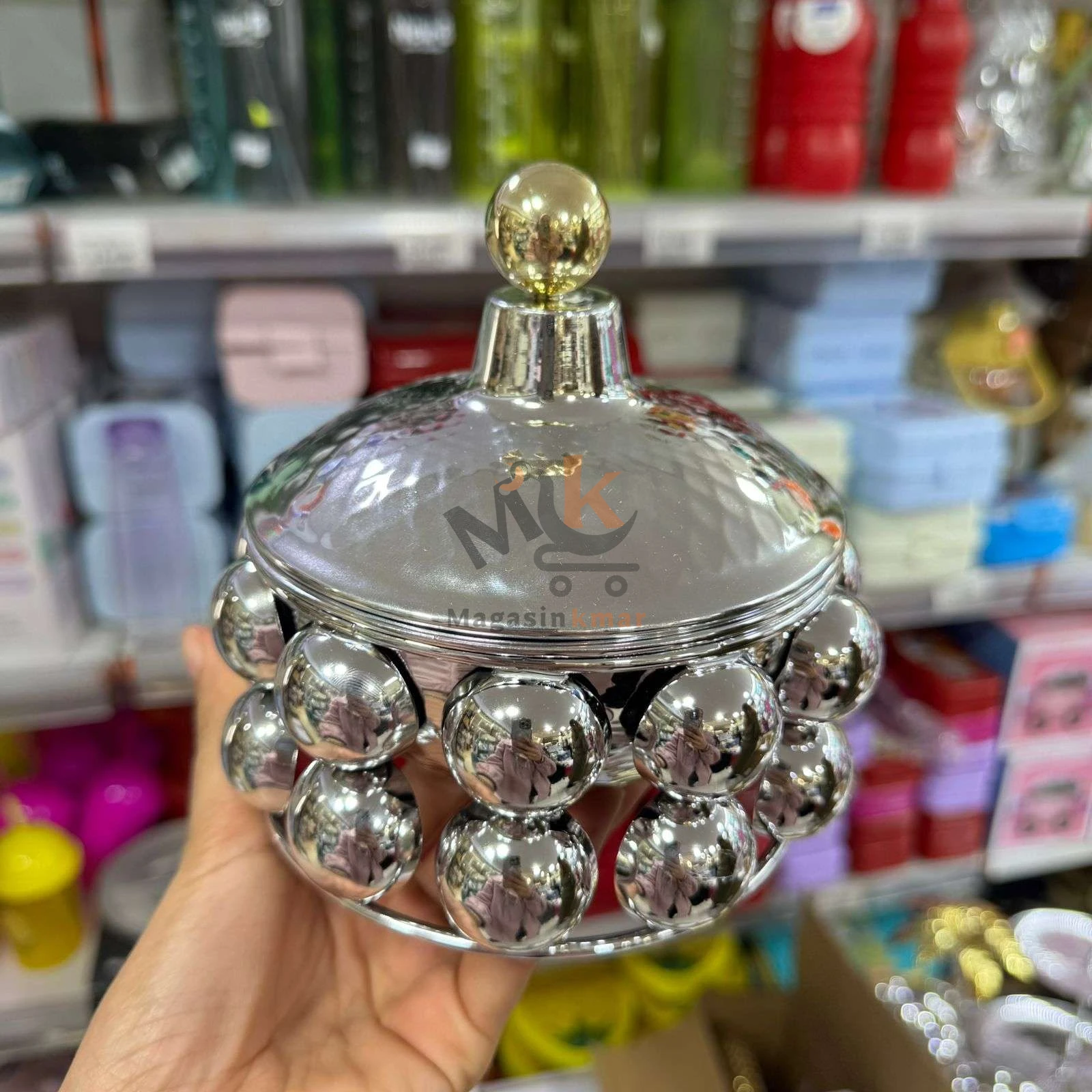Bonbonnière PM argent en métal avec couvercle – Élégante et décorative