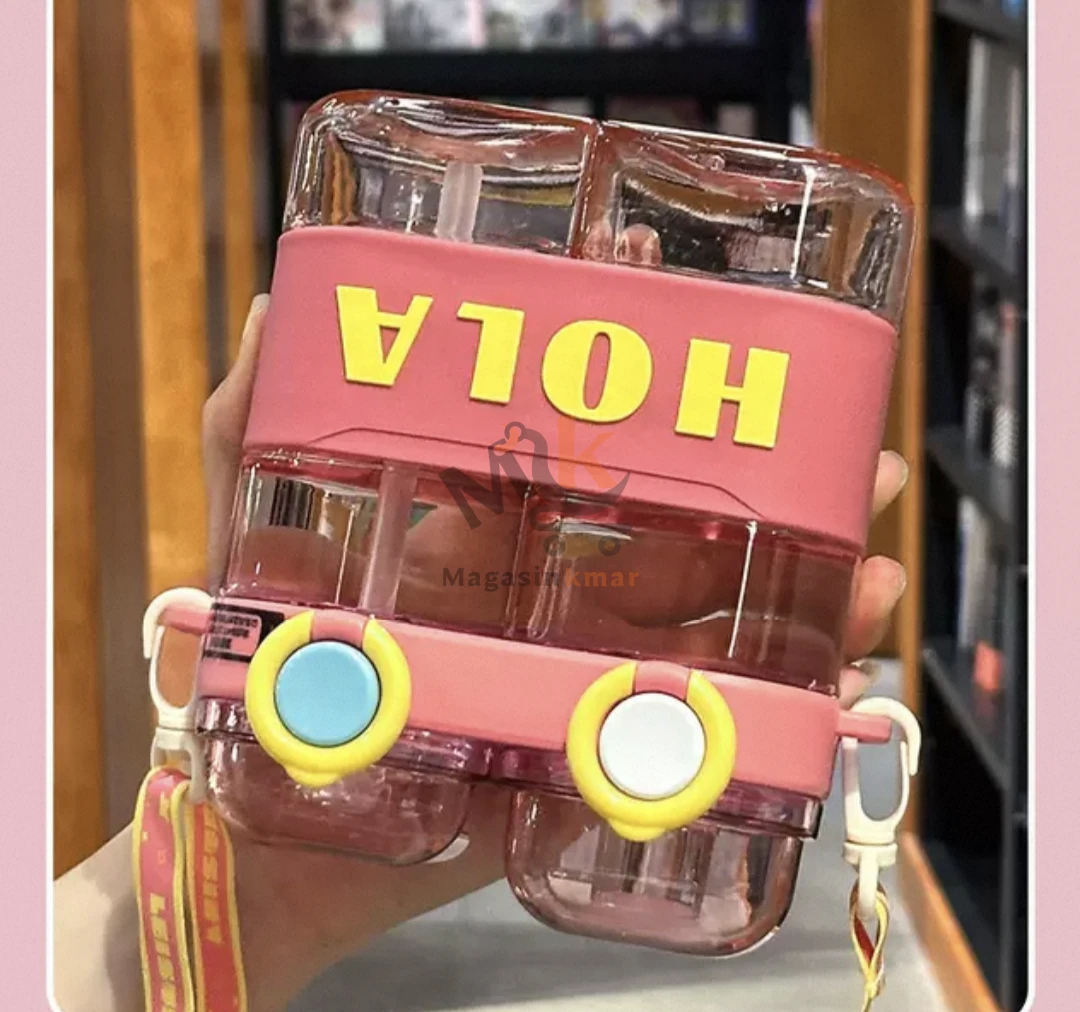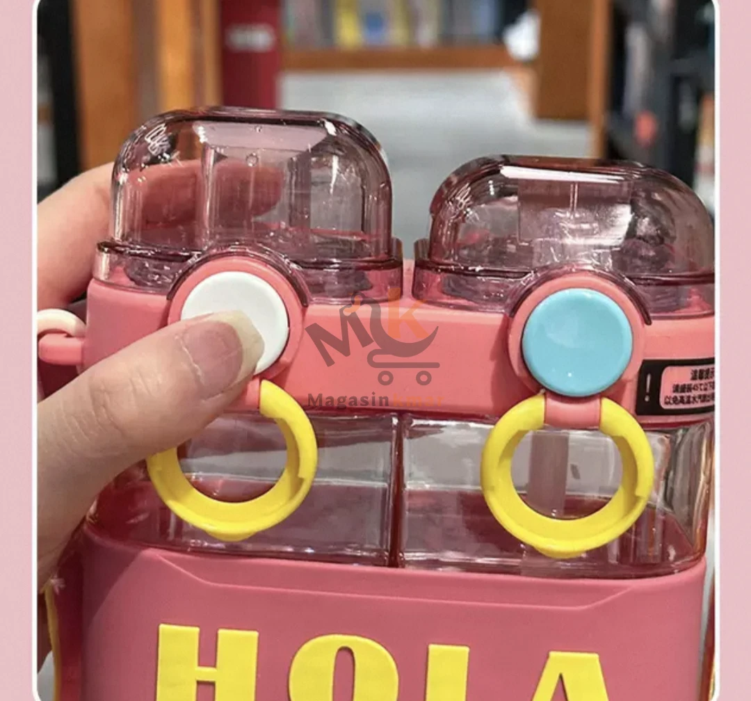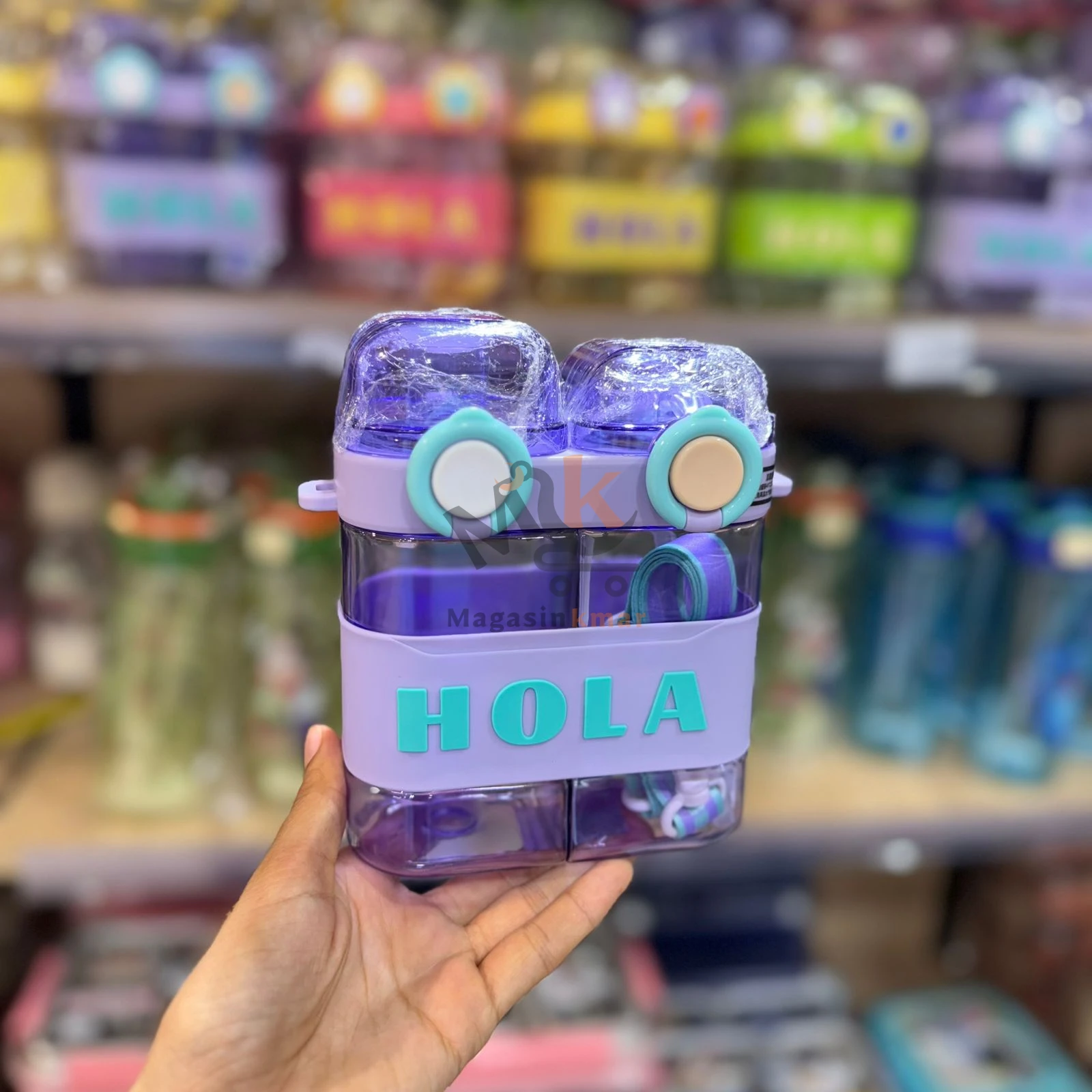 Bouteille 2en1 HOLA en plastique alimentaire avec ceinture