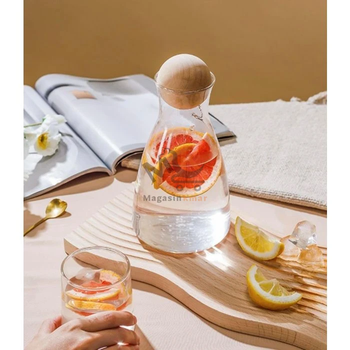 Servez vos boissons avec élégance grâce à cette carafe en verre de 25 cm, idéale pour l’eau, les jus ou les infusions lors de vos repas en famille.