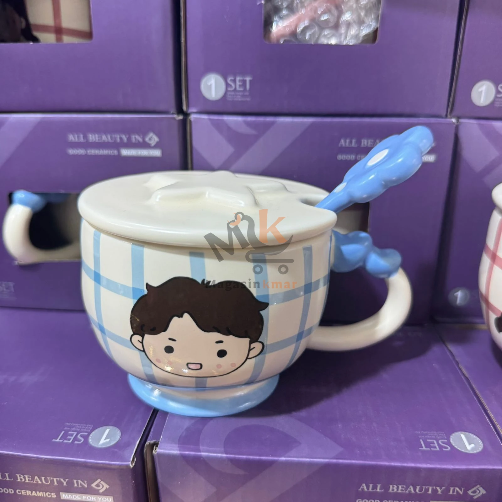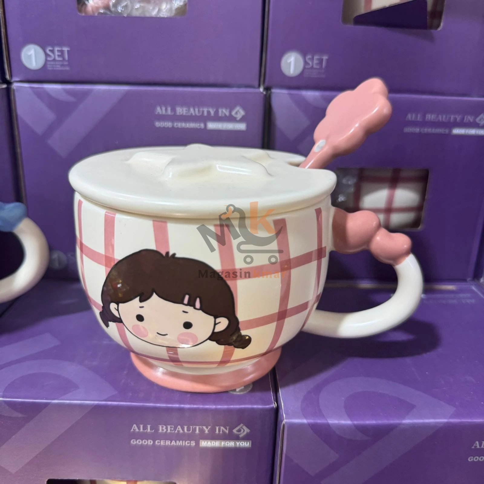 Chope enfant en céramique avec couvercle et cuillère