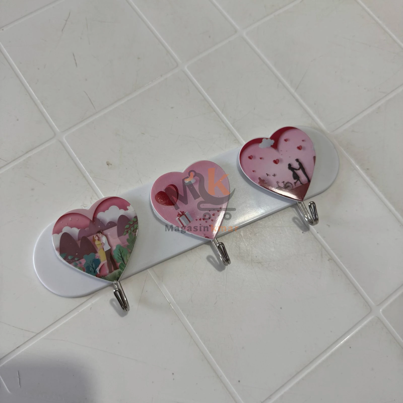 Lot de 3 crochets muraux cœur et smiley en plastique