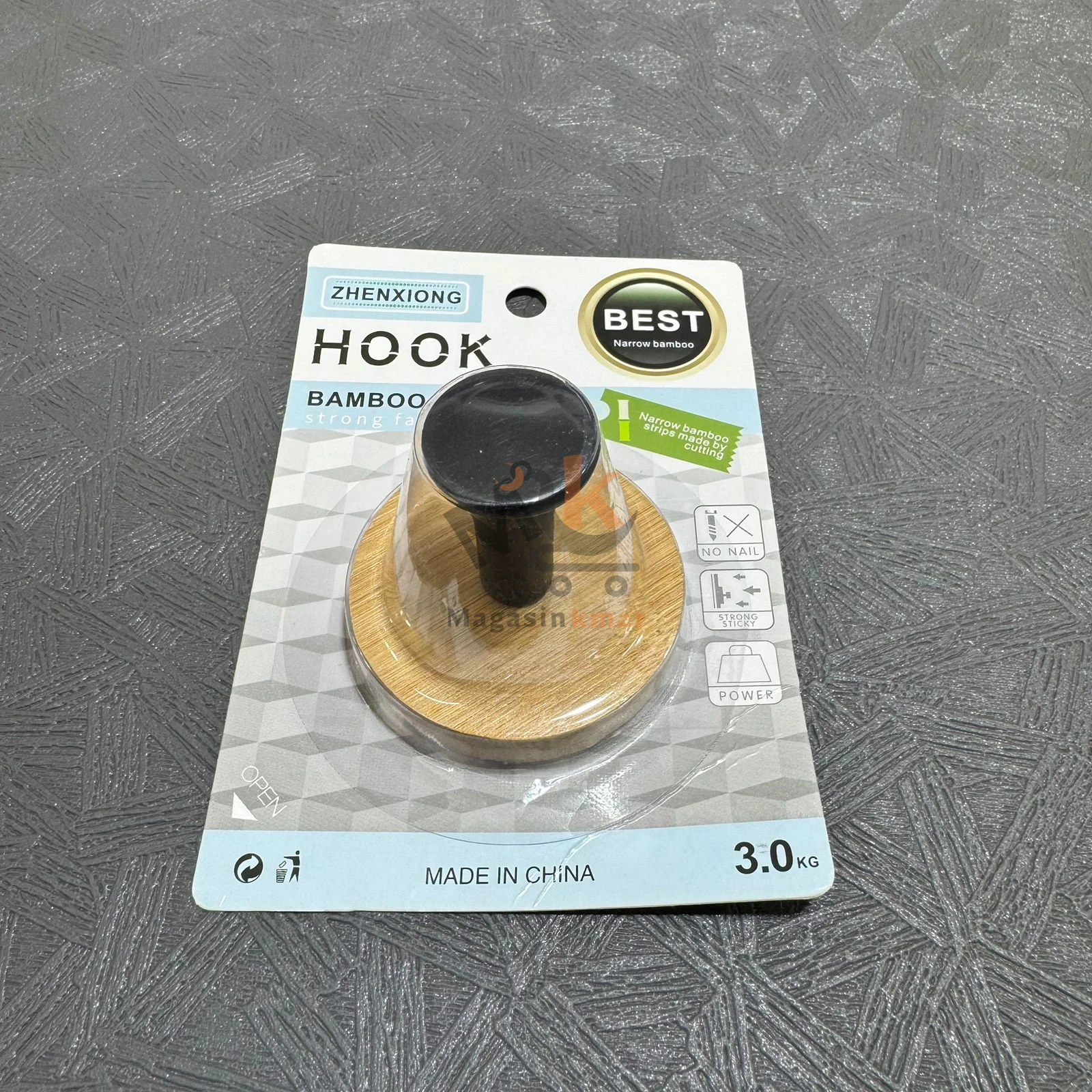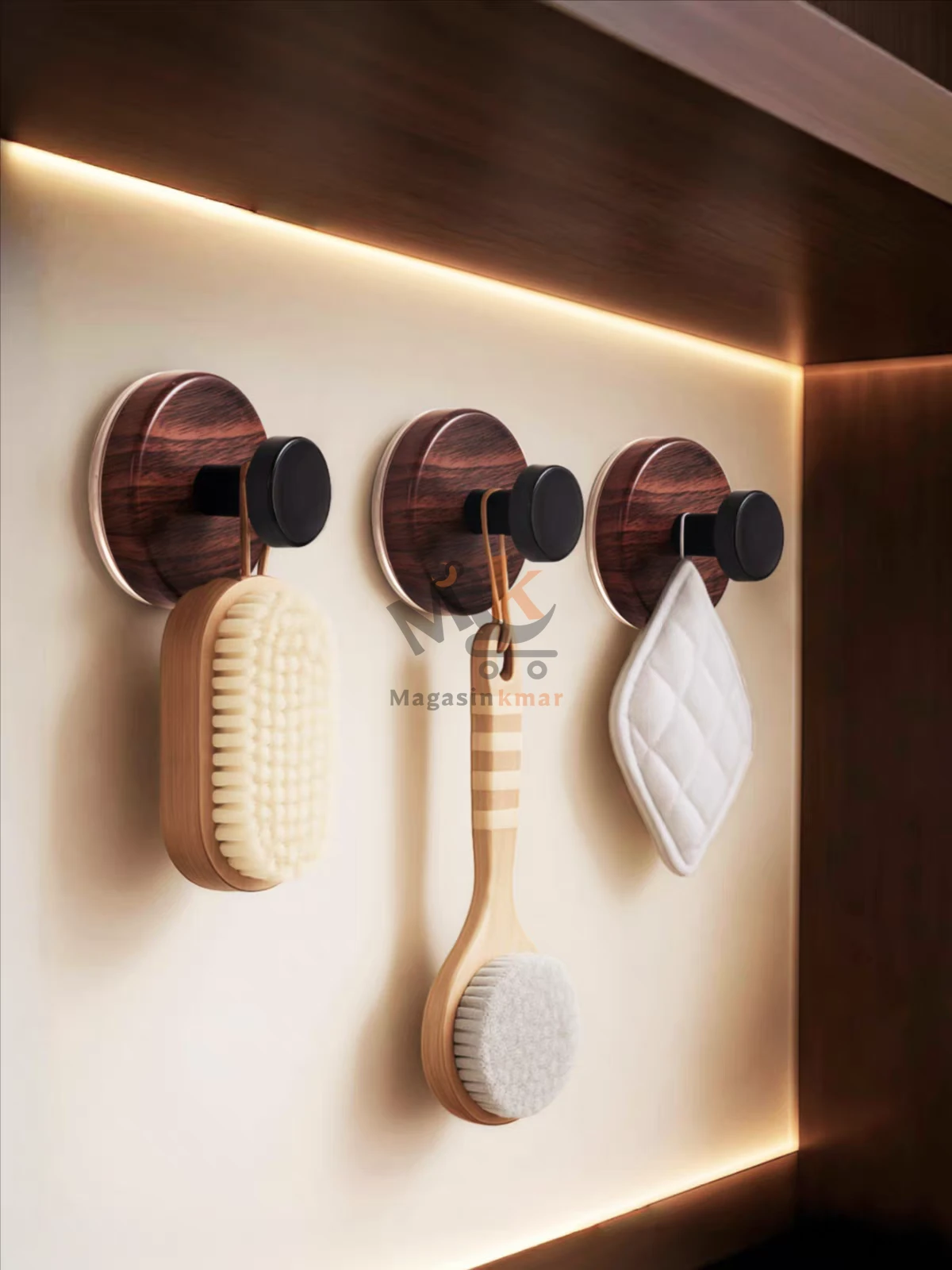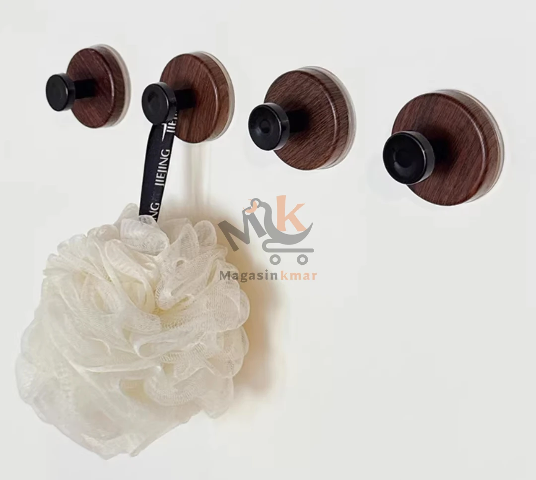 Crochet autocollant en bois – Diamètre 5 cm – Fixation sans perçage