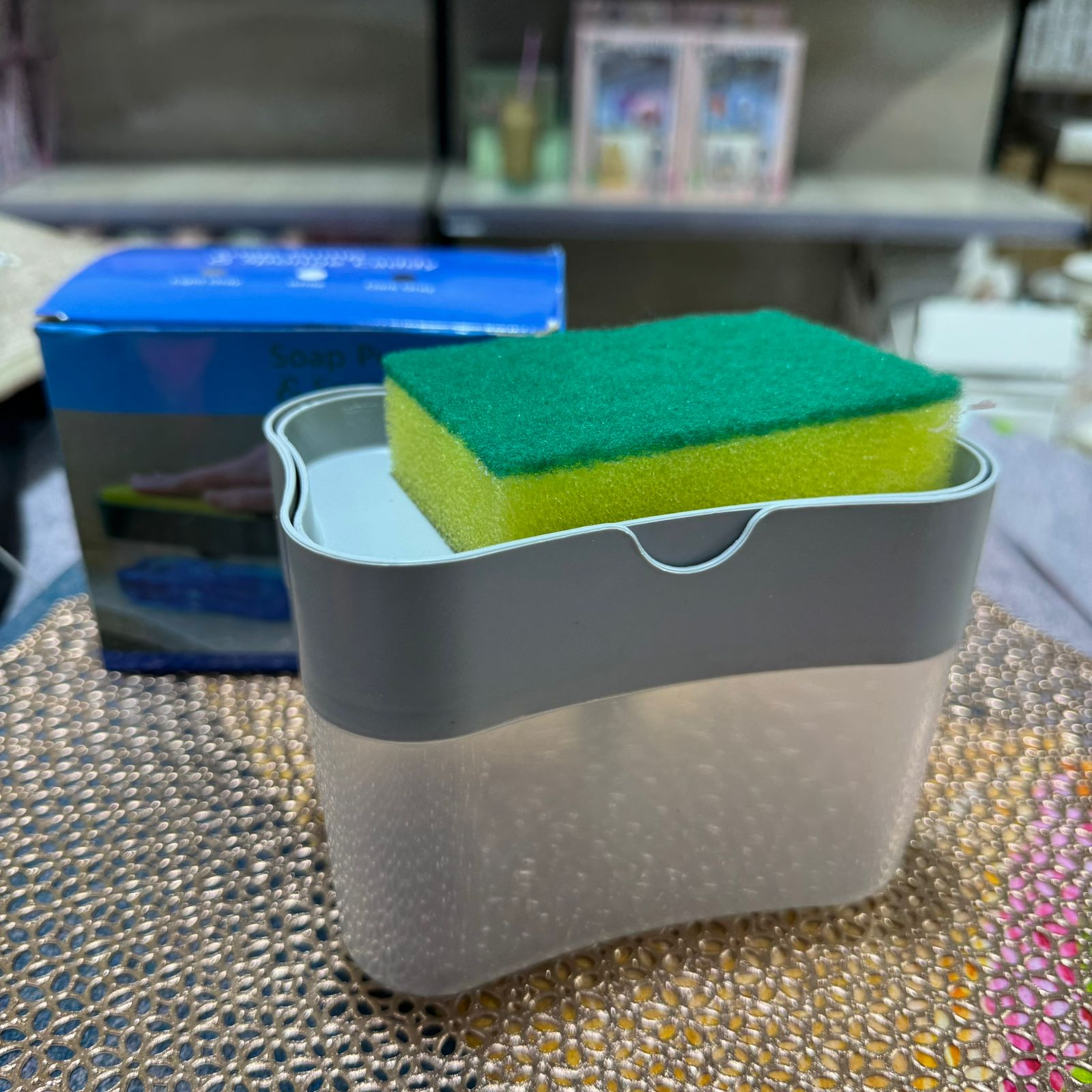 Distributeur de savon liquide avec éponge – Pratique pour cuisine