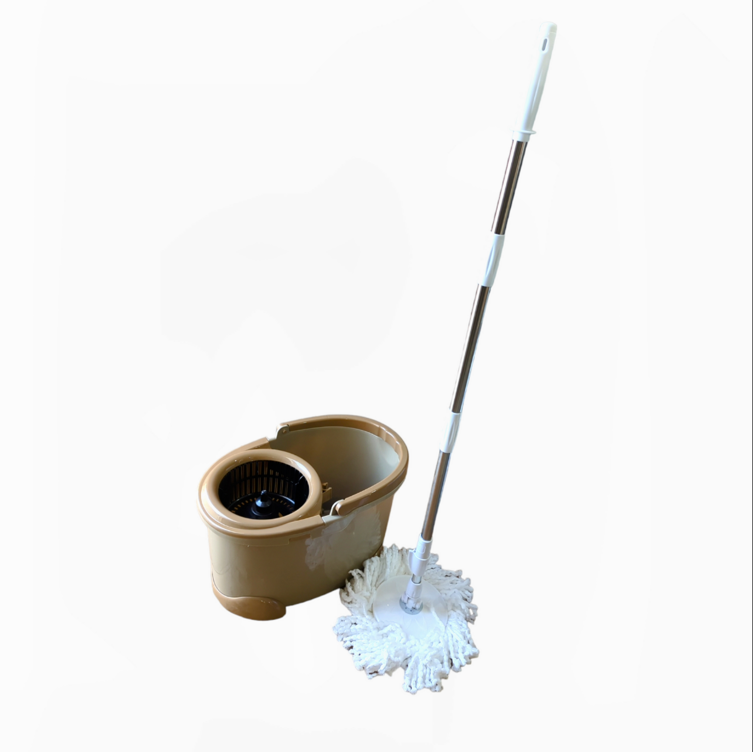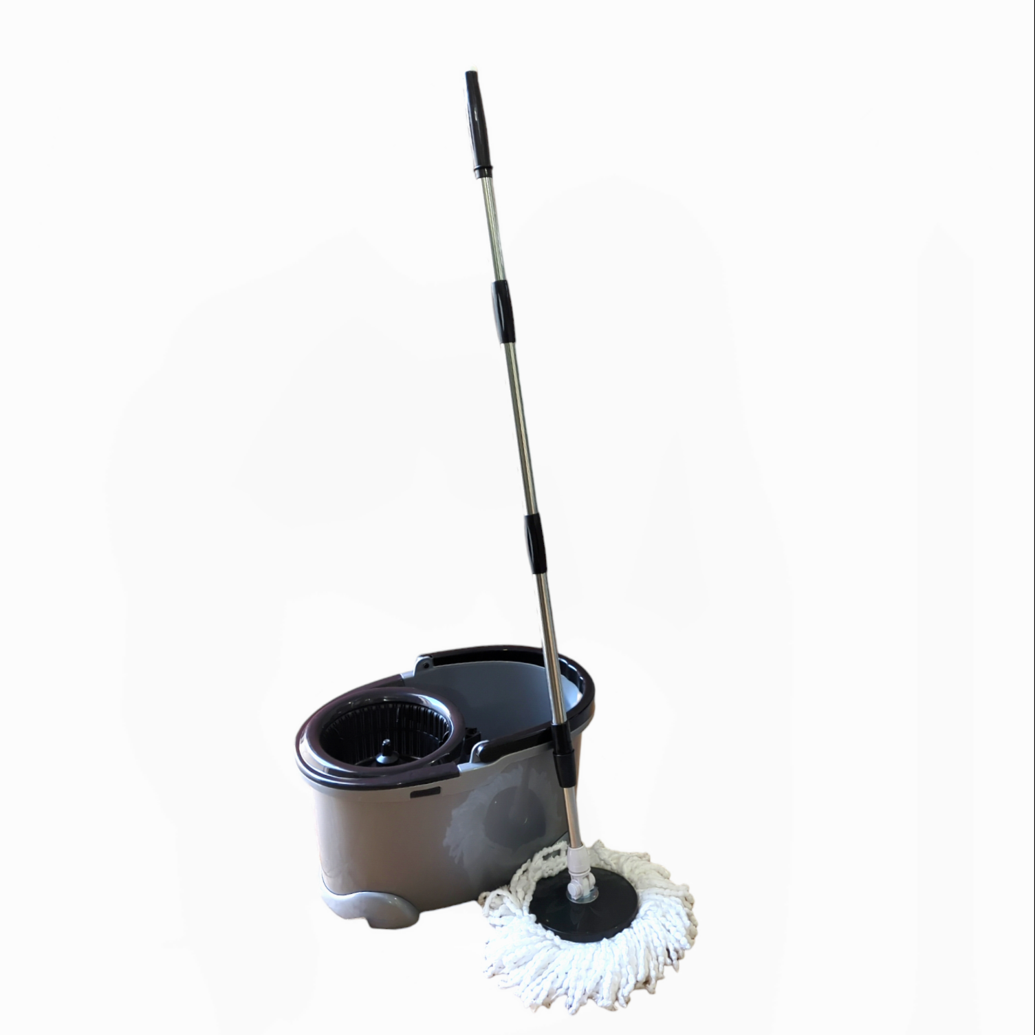 peut contenir de l'eau pour nettoyer la tête de vadrouille.