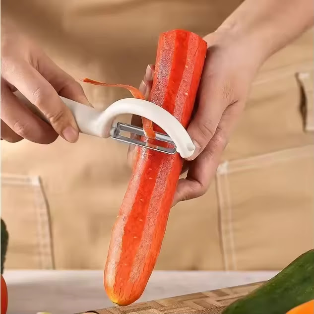 Épluchez facilement vos pommes de terre et légumes avec cet éplucheur en plastique de 17 cm, pratique et léger pour un usage quotidien en cuisine.