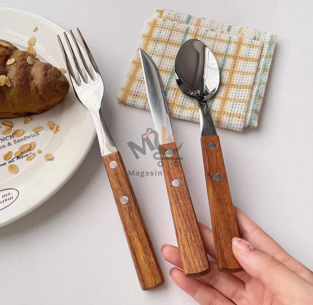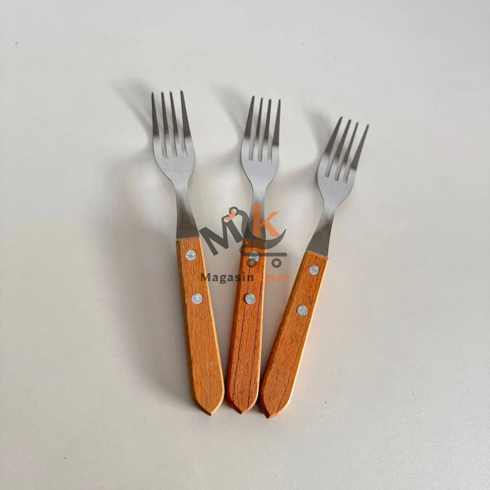 Lot de 3 fourchettes 19 cm en acier inoxydable avec manche en bois