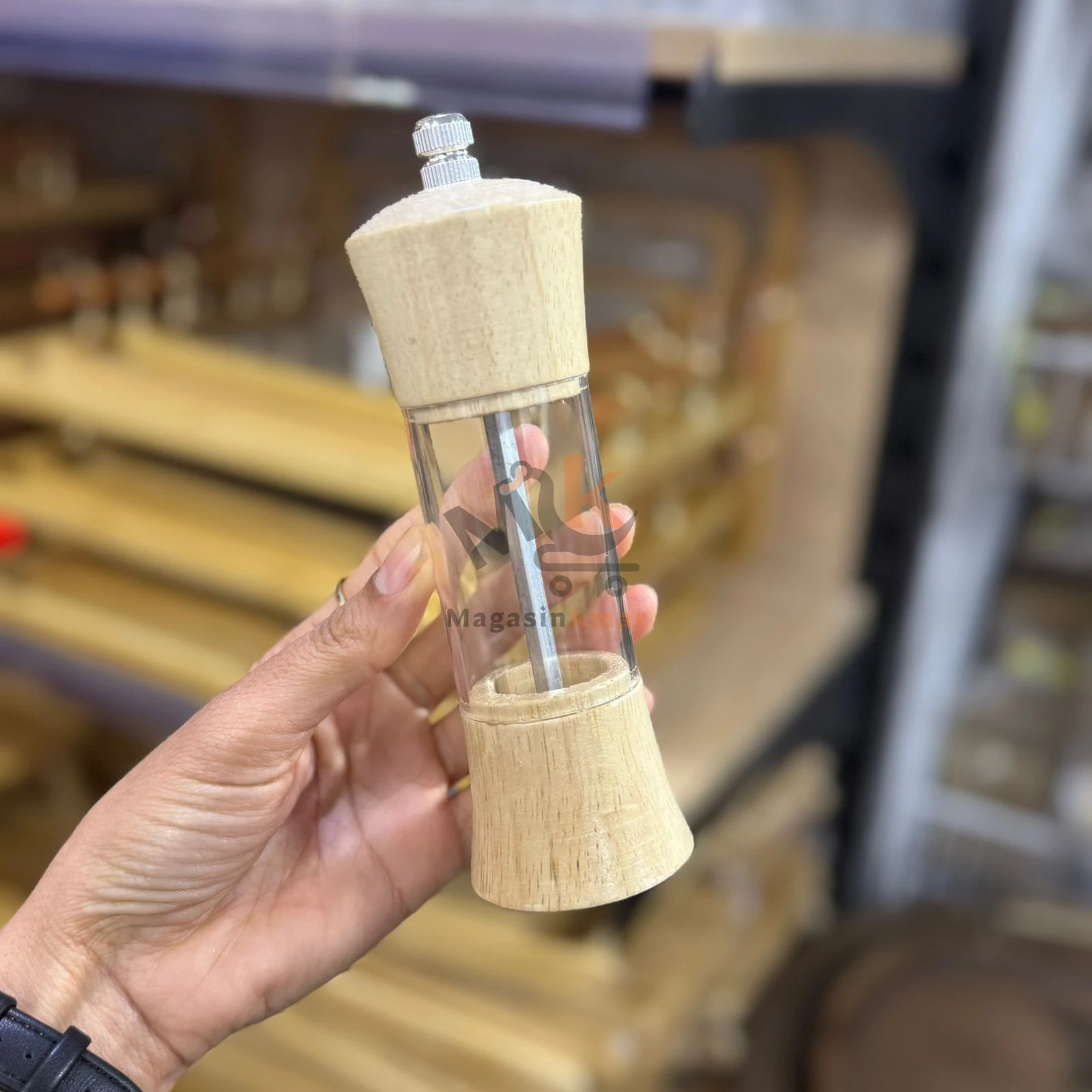 Moulin sel et poivre en plexi et bois 15 cm – Broyeur élégant pour cuisine