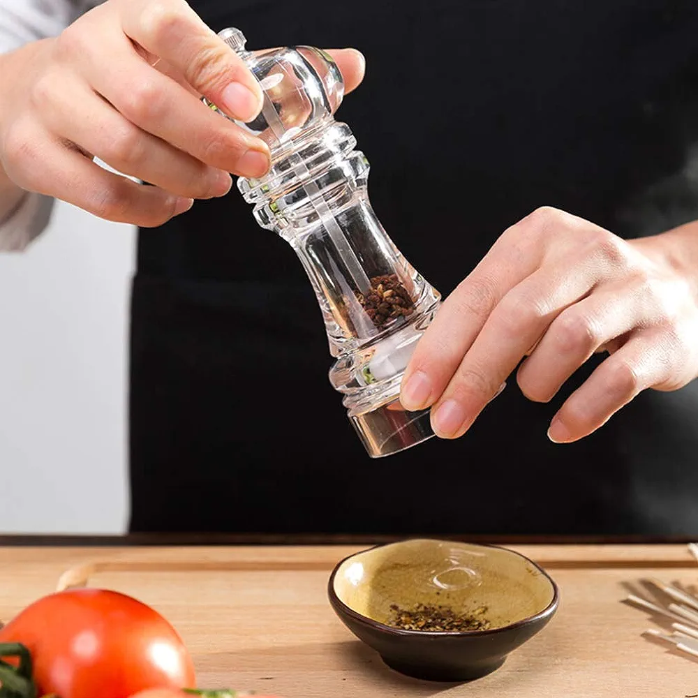 · Moulin manuel en acrylique alliant formes généreuses et transparence pour sublimer vos poivres, baies roses et graines de coriandre.