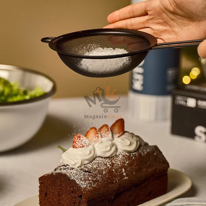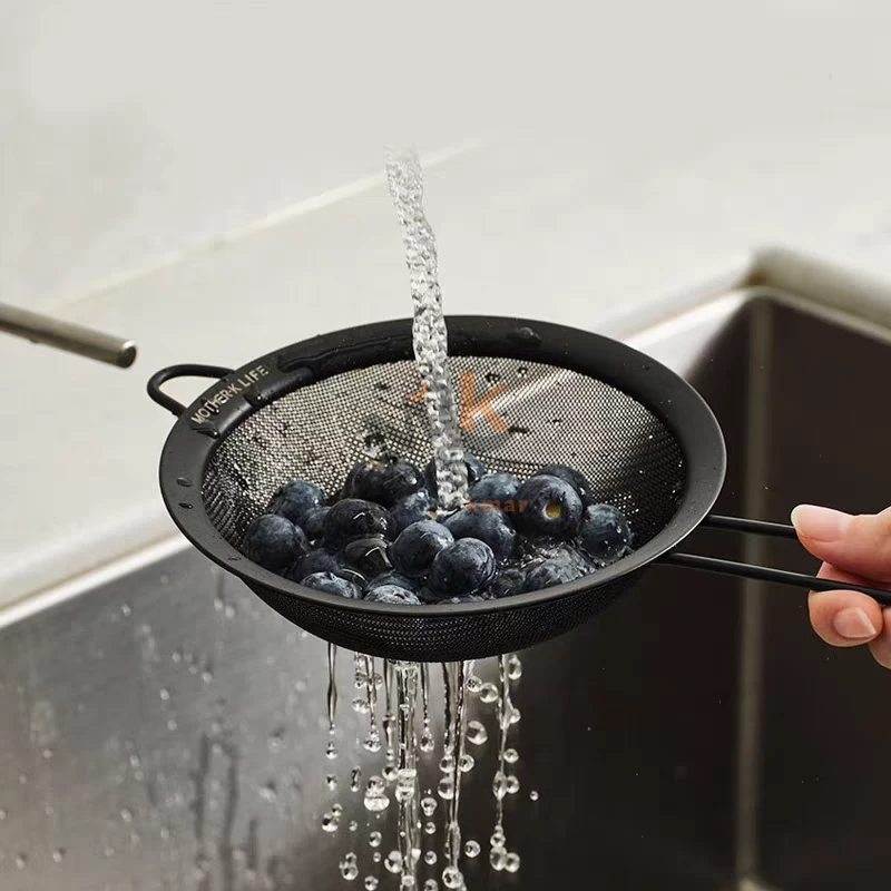 Passoire noire en acier avec manche – 31 cm – Égouttage rapide et pratique