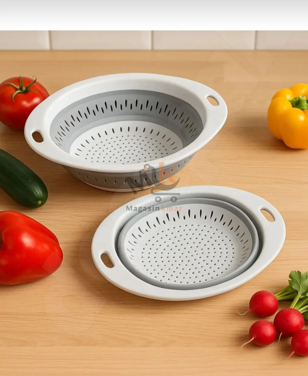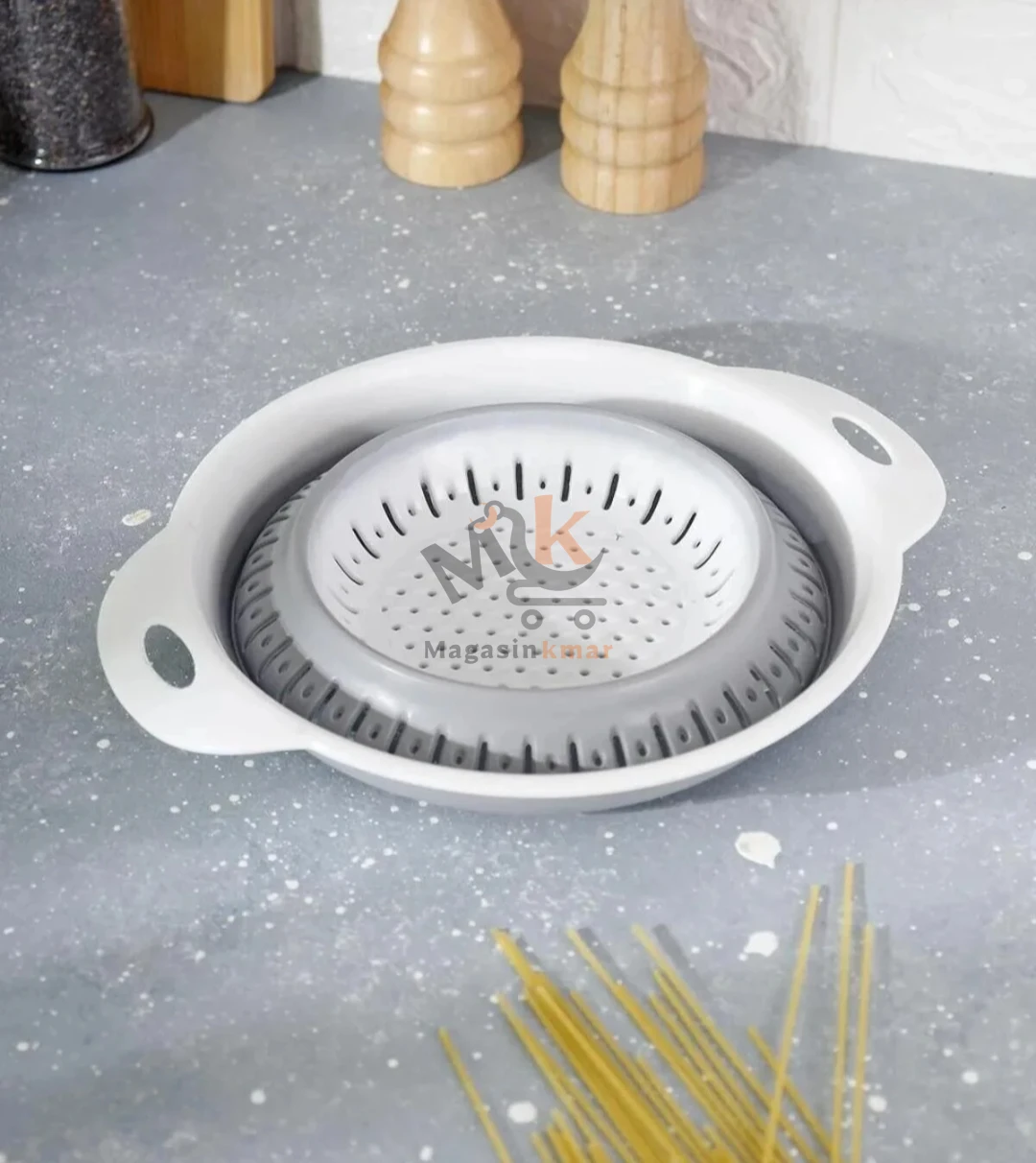 Passoire ronde pliable en plastique alimentaire 1.8L – Sans BPA, pratique et gain de place