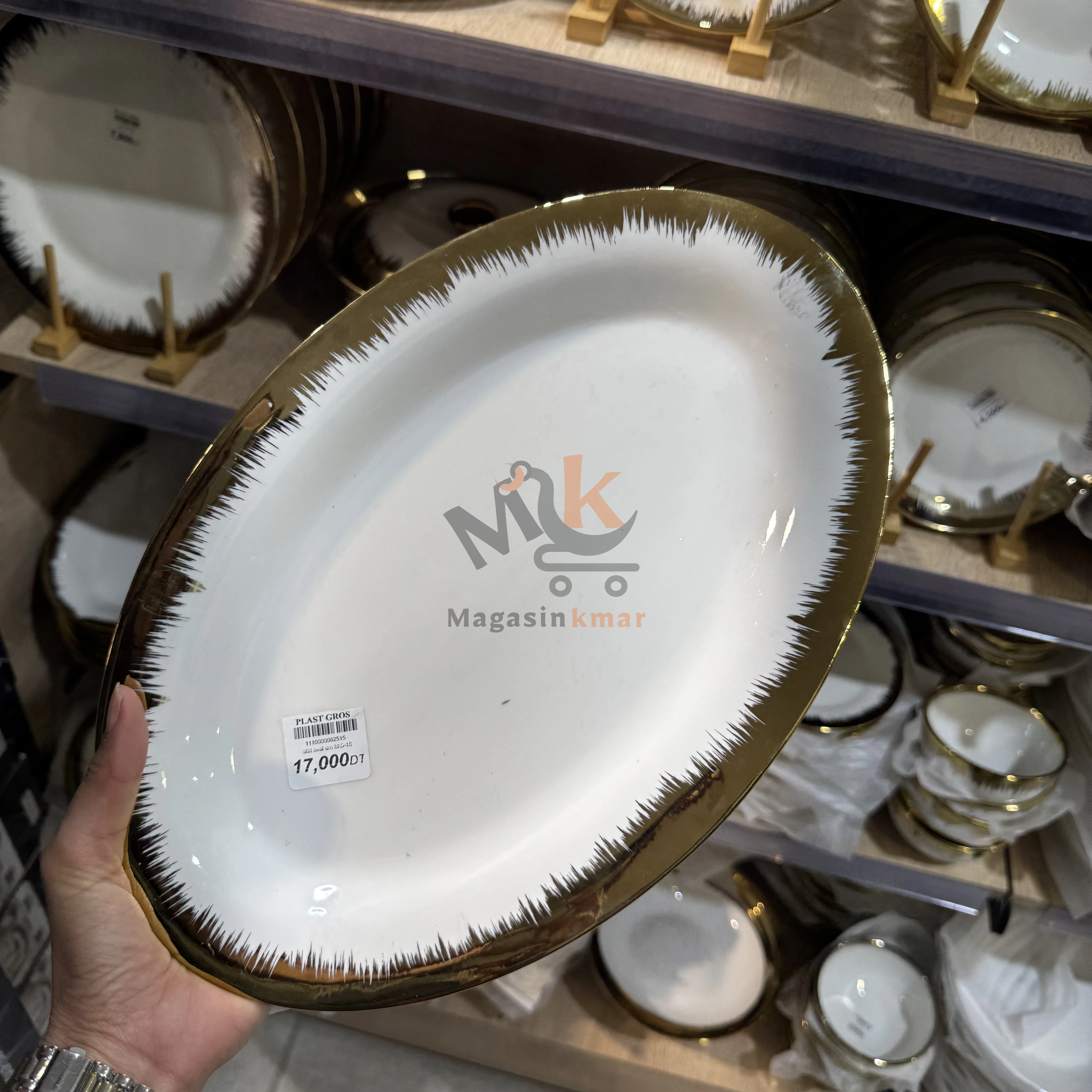 Plat ovale en céramique avec touche dorée GM – Élégant pour service et réception