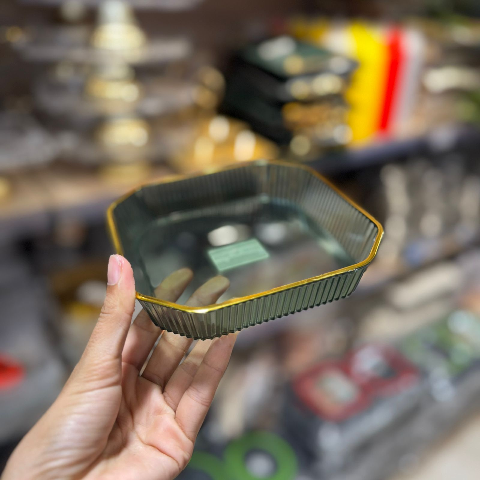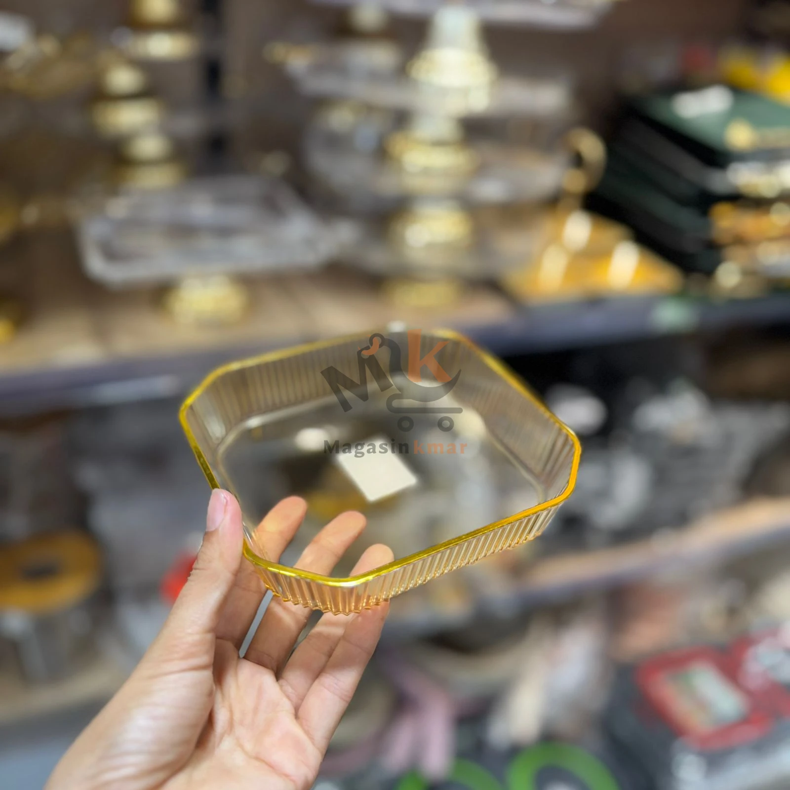 Plateau carré en plexi coloré avec bordure dorée