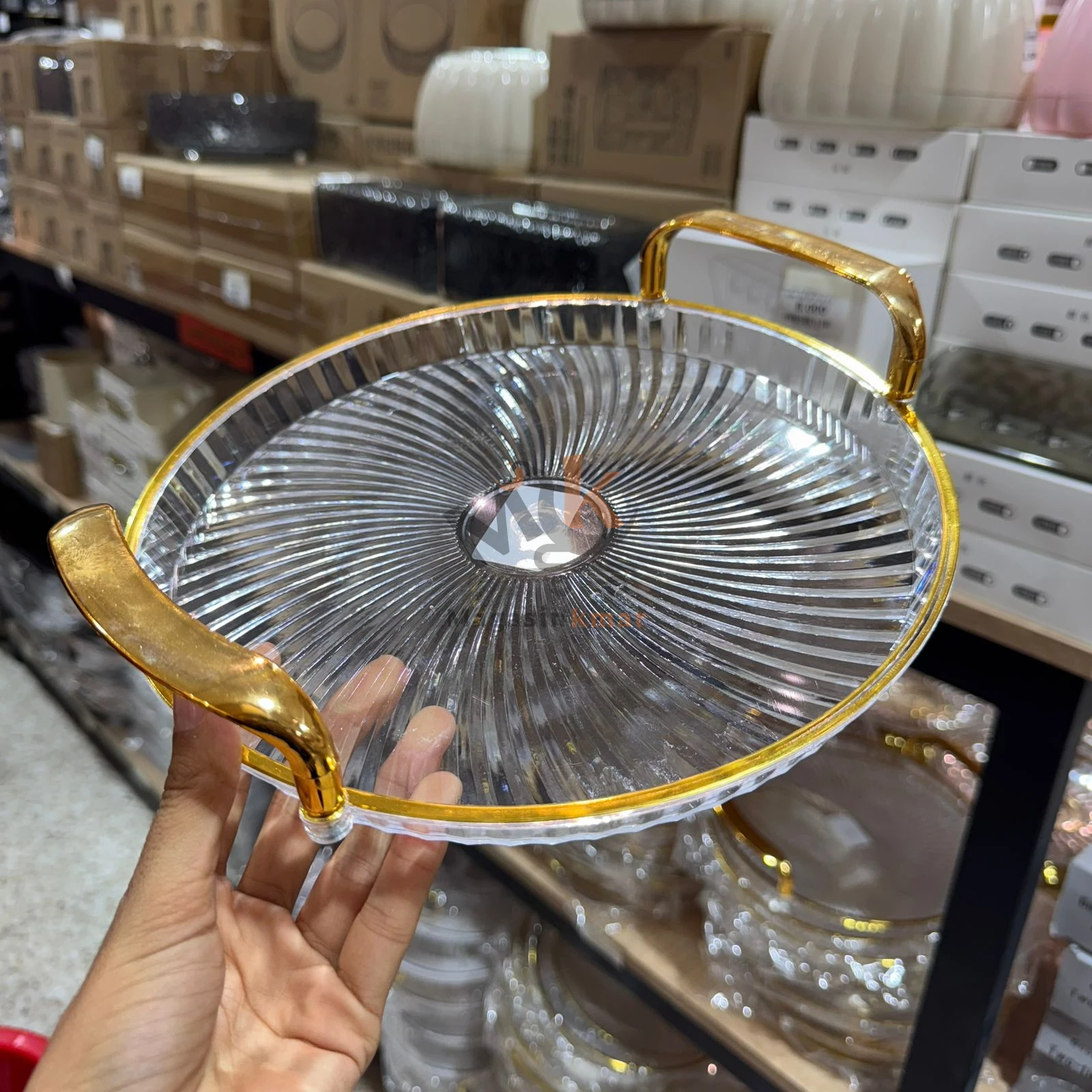Plateau rond en plexi avec deux manche doré