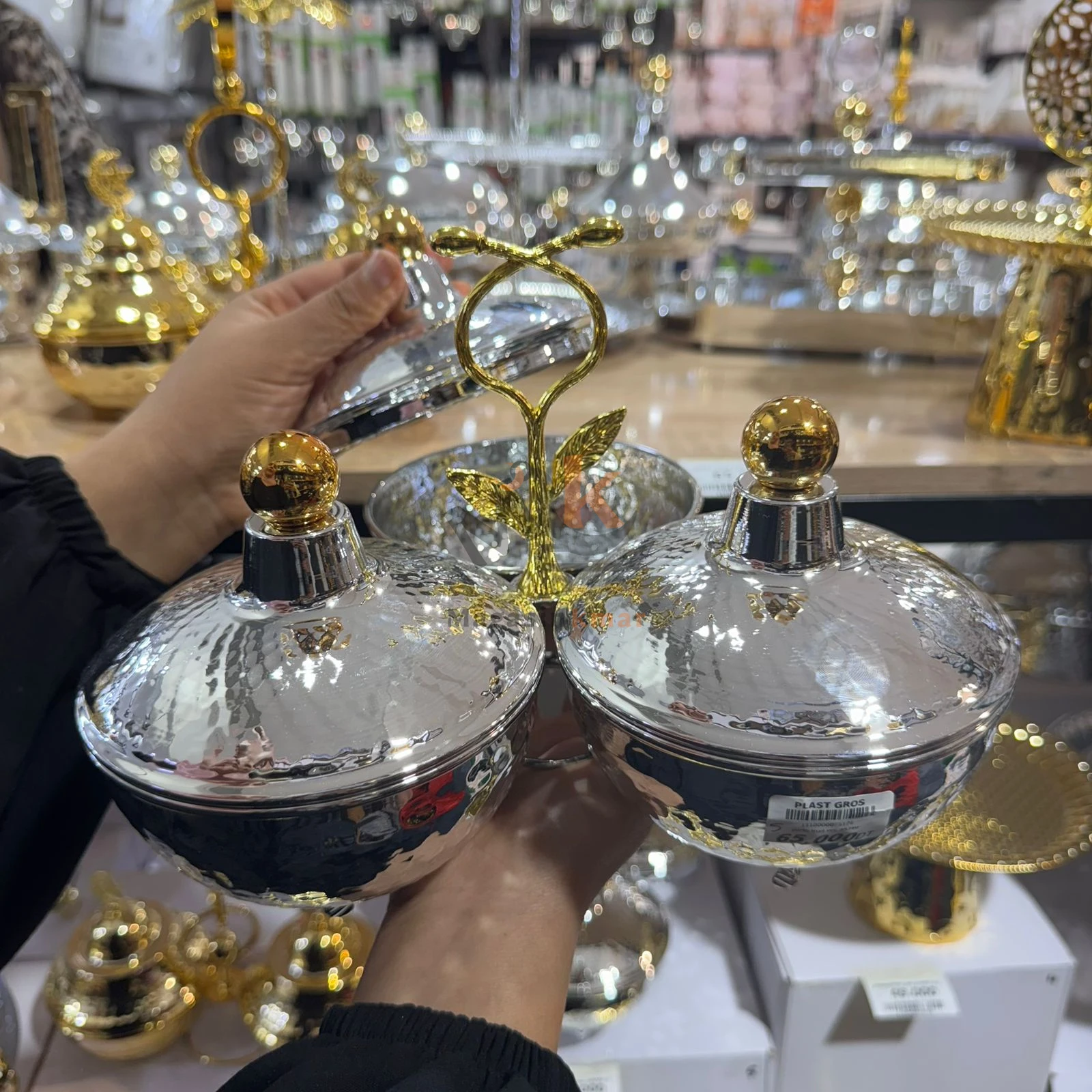 Présentoir en métal avec 3 bonbonnières – Élégant pour table et réception