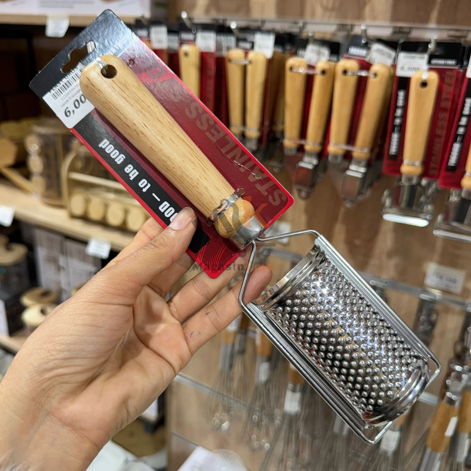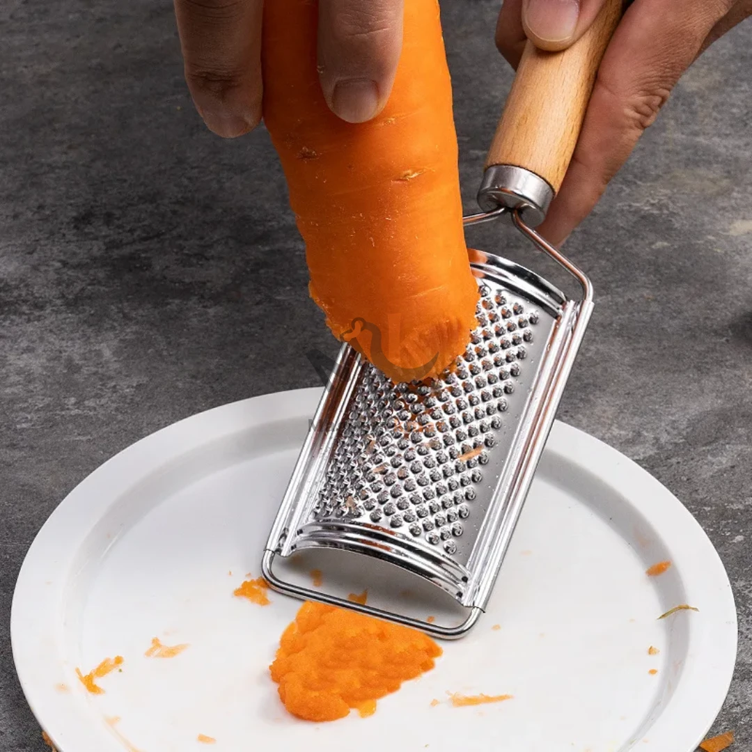 Râpe à fromage et légumes en acier avec manche en bois – 24 cm