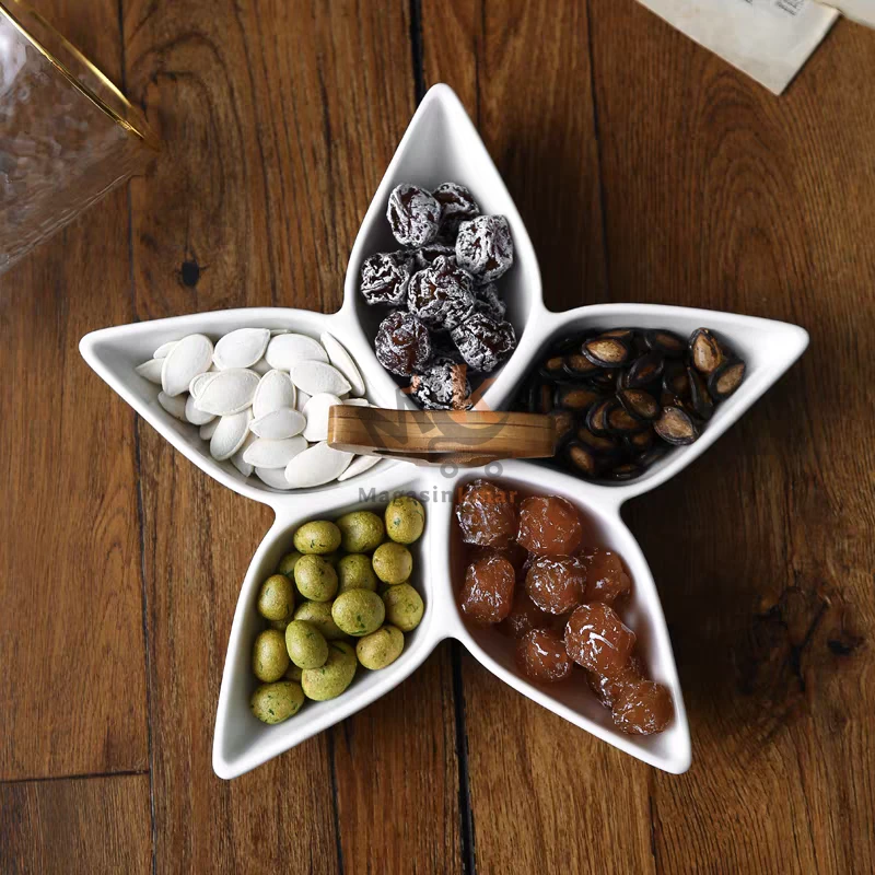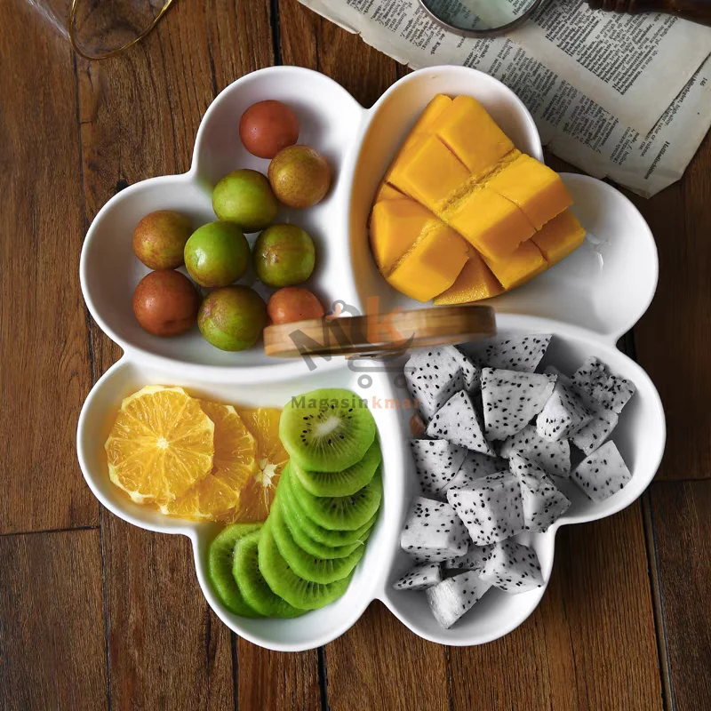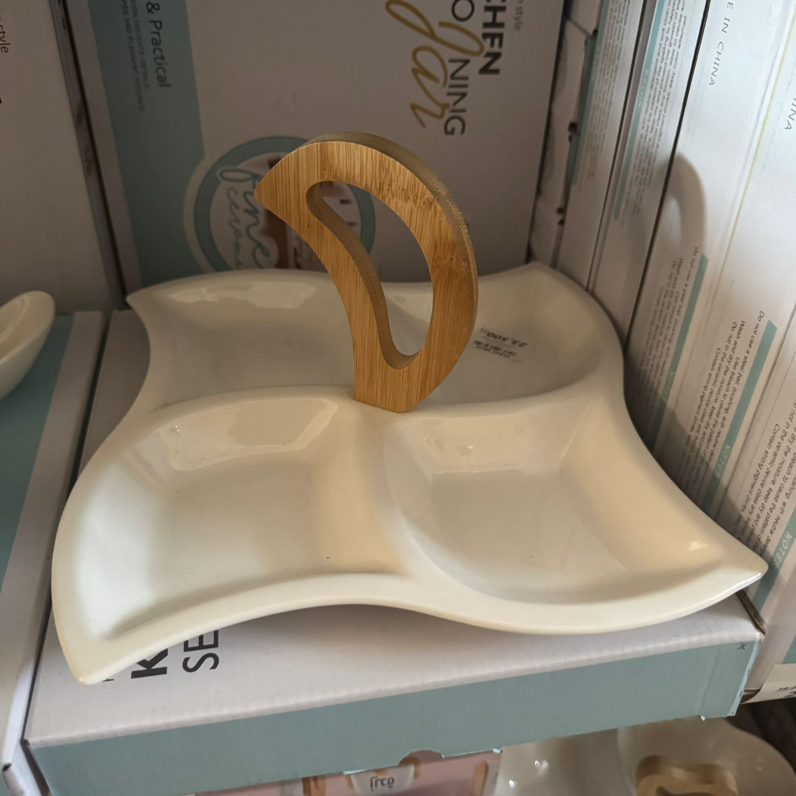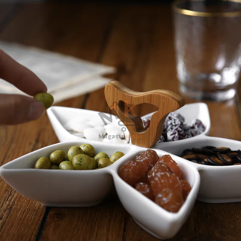 Présentoir en céramique avec poignée en bois – Plateau élégant 30 cm