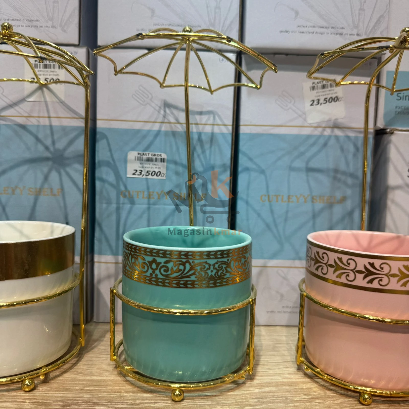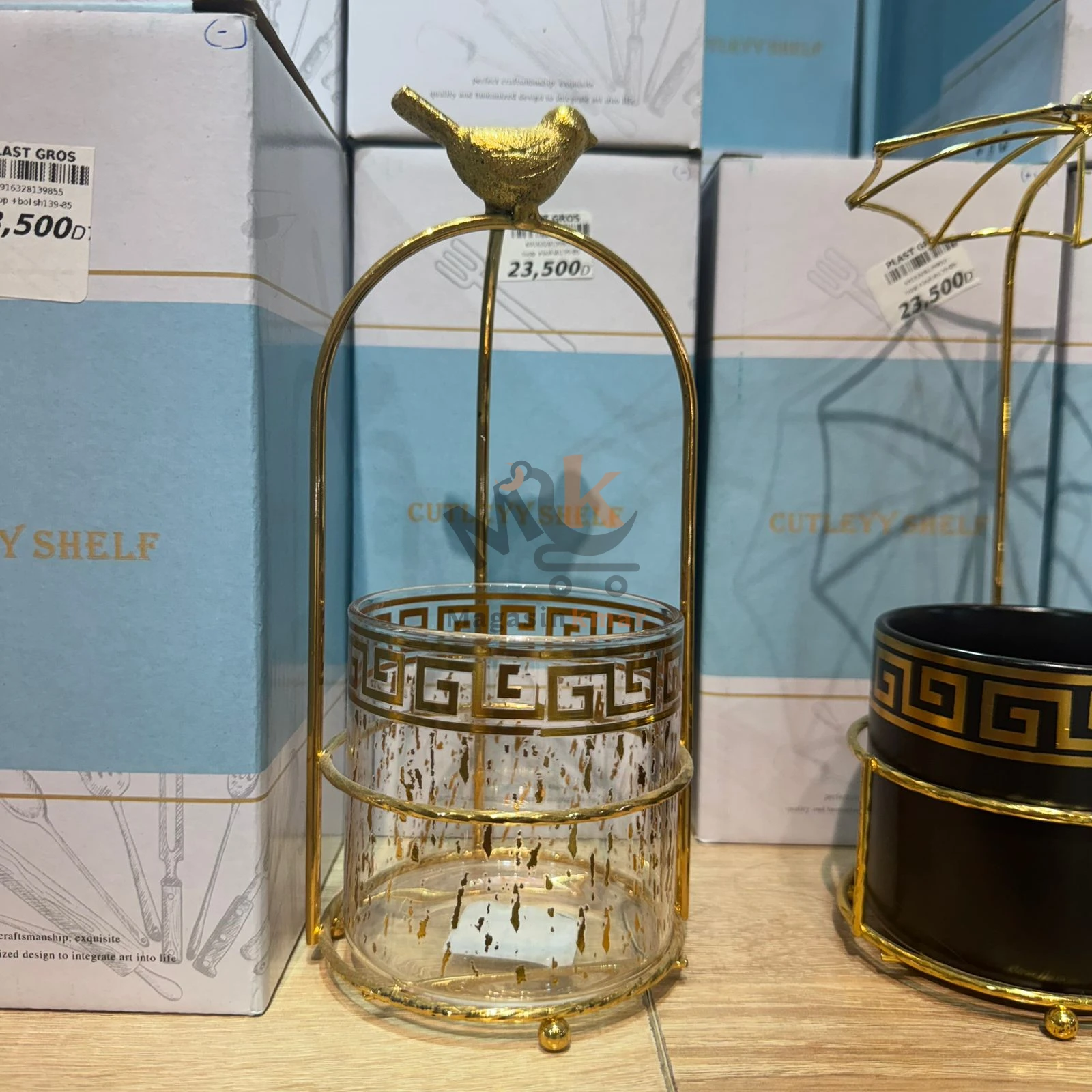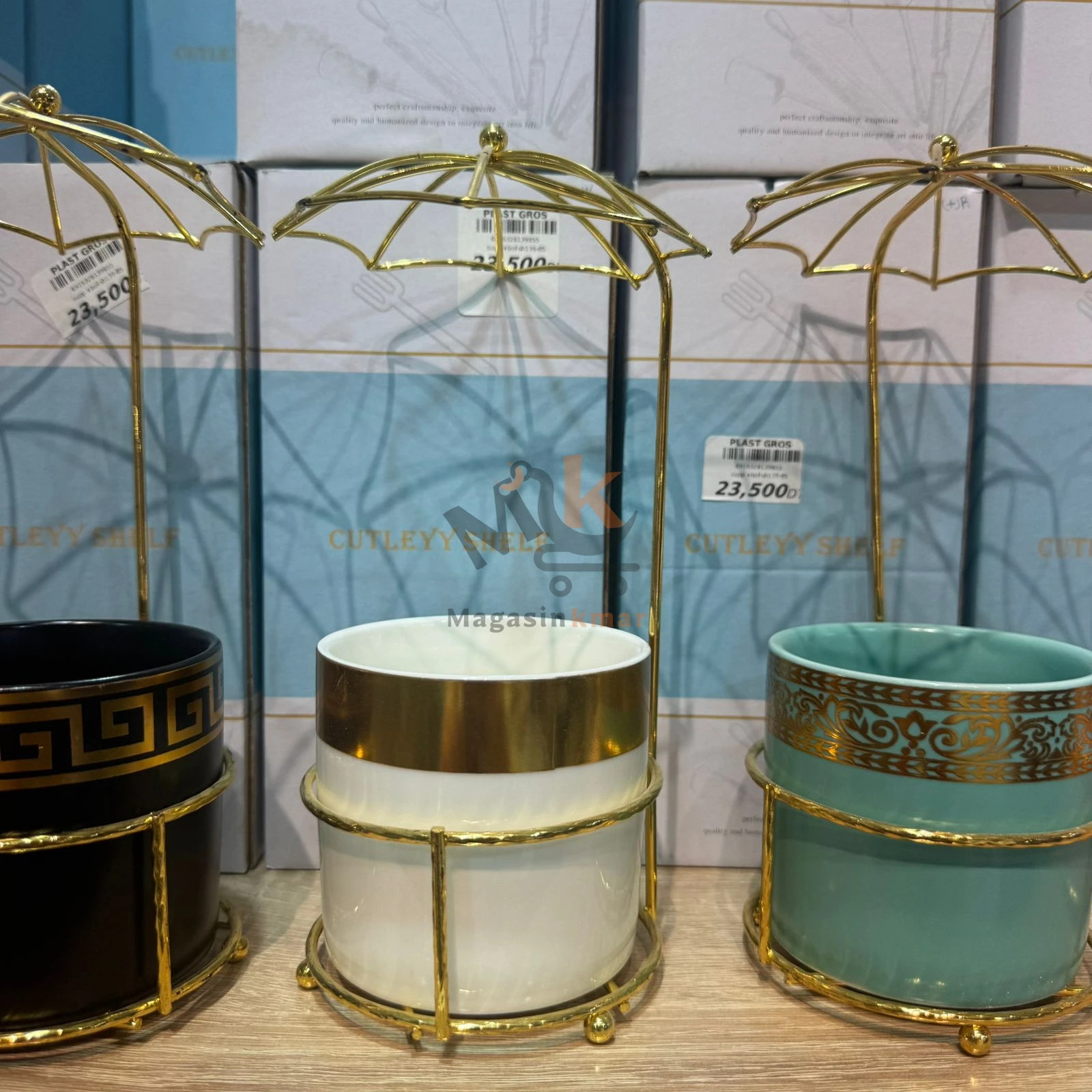 Porte-couverts avec support en métal – Verre ou céramique – Design élégant