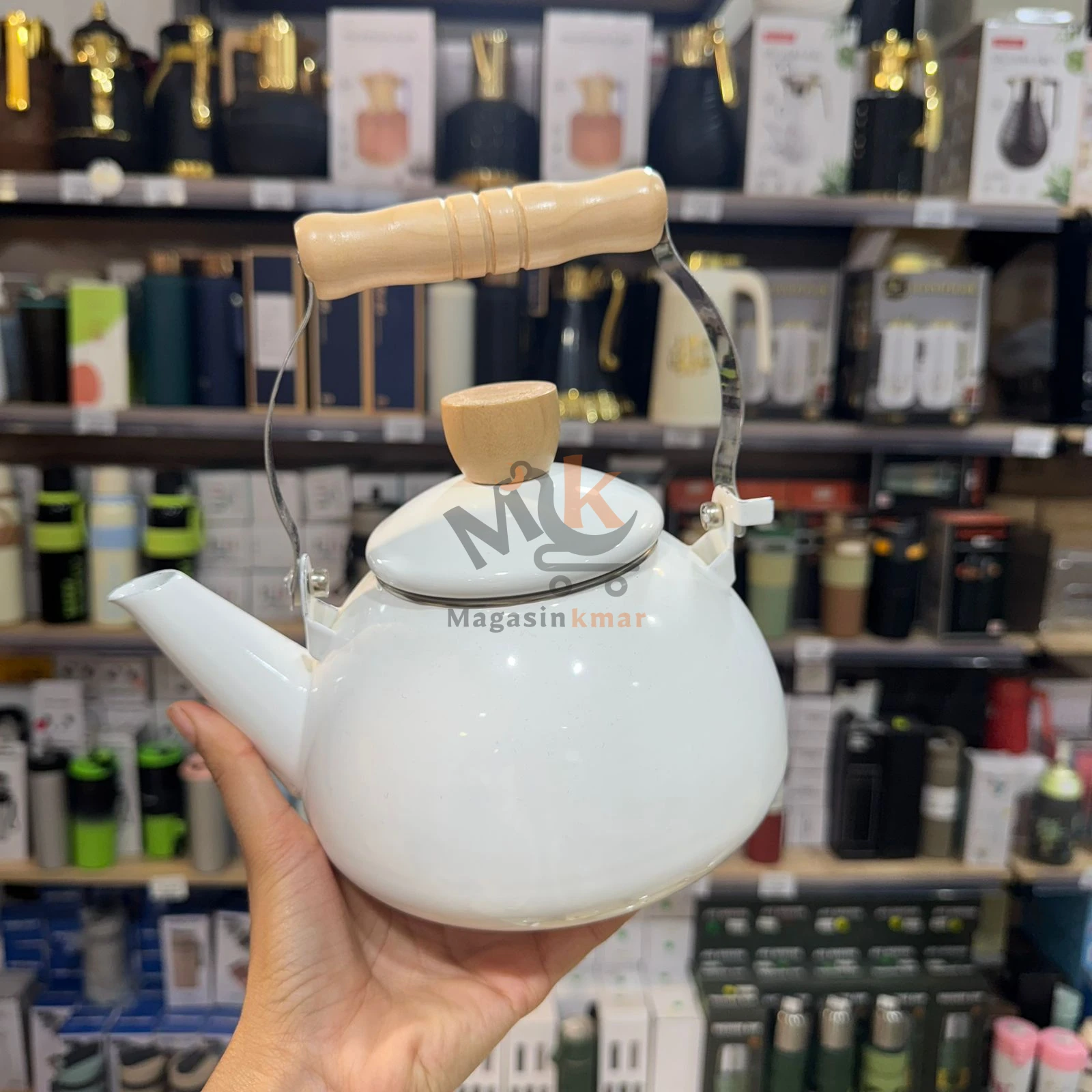 Théière émaillée blanche 1.5 L en métal – Style traditionnel et résistance thermique