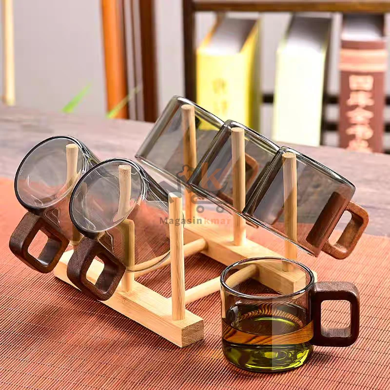 Mini tasse à café transparent en verre avec manche en bois
